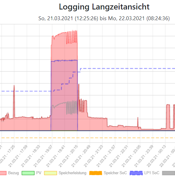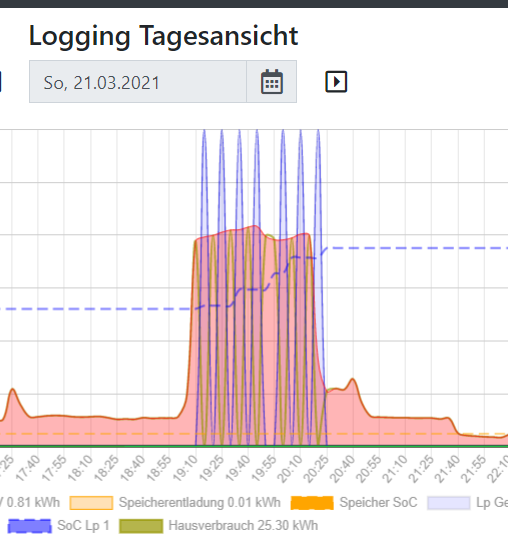 Gestern Abend etwas nachgetankt...In der Tagesansicht sind dubiose Spitzen entstanden. Fronius Gen24 / go-e Problem?