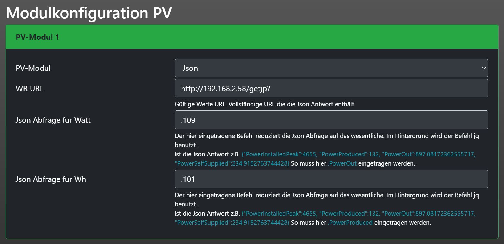 Beide Solarlog ausgelesen uber Json