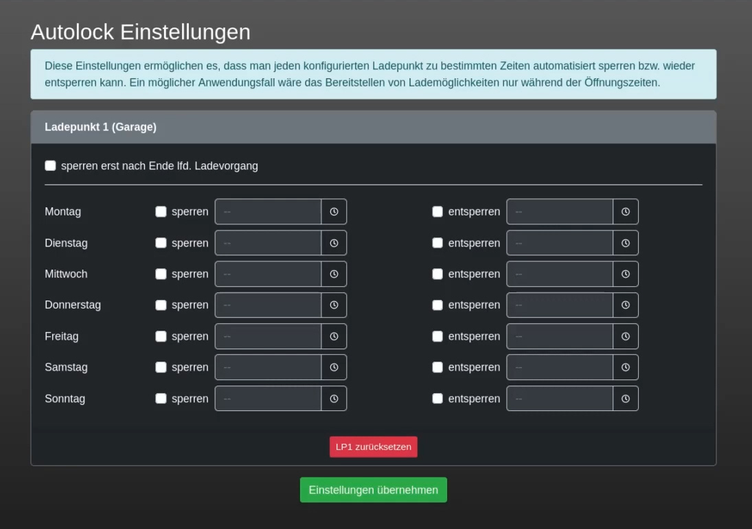 Die Idee dahinter ist folgende: wenn ich heimkomme, möchte ich nur noch das Auto anstecken und fertig. Nicht noch selber im Kalender nachschauen, allfällige Frickeleien am Web Interface oder mit Knöpfen, Ladeleistung anpassen/optimieren, etc. - ich bin wohl einfach etwas faul