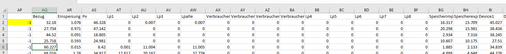 Spalte 21 scheint der Ladestand (SoC) der Batterie zu sein, die anderen Werte kann ich aber beim besten Willen nicht zuordnen.
