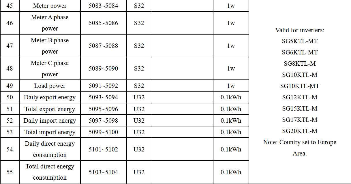 Also die Sungrow SR Wechselrichter (keine Hybriden ) haben für MODBUS-TCP nur die 5er Register.