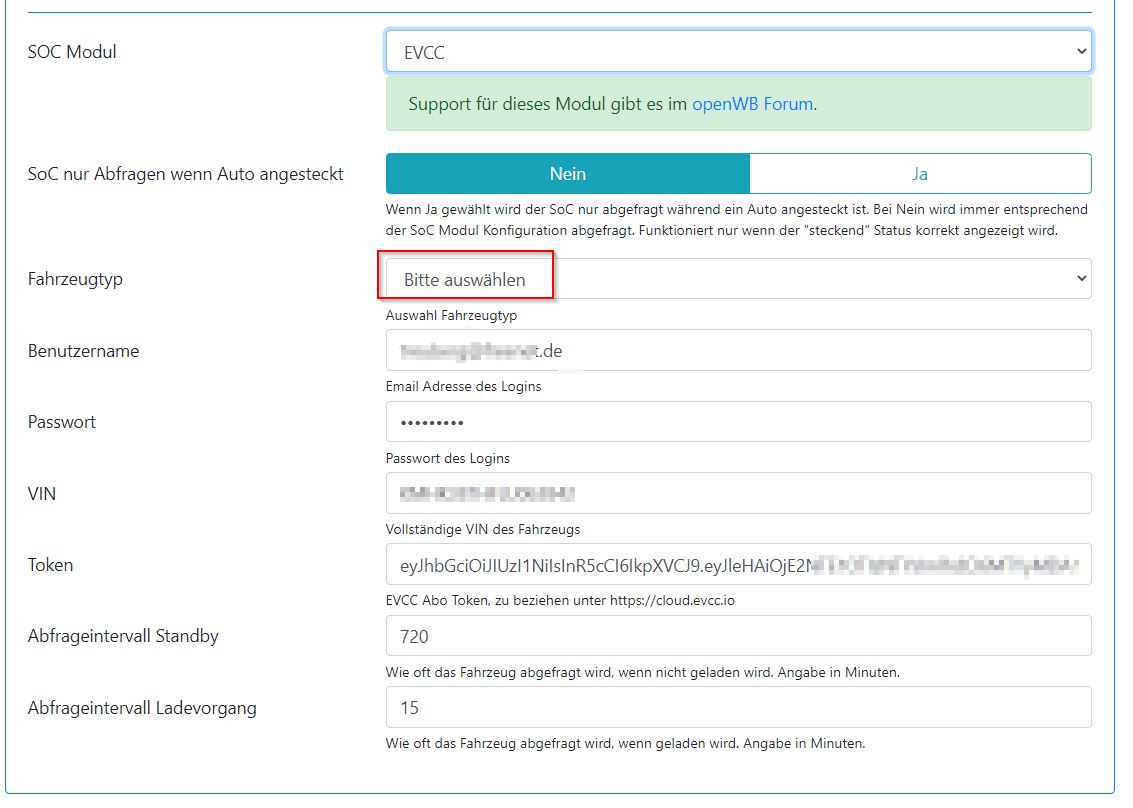 Über https://cloud.evcc.io stehen die SoC Module von EVCC auch für OpenWB zur Verfügung. Für die Nutzung ist ein "Token" notwendig. Als entsprechendes Testtoken zum ausprobieren mit zeitlich beschränkter Gültigkeit könnt ihr dieses hier verwenden: