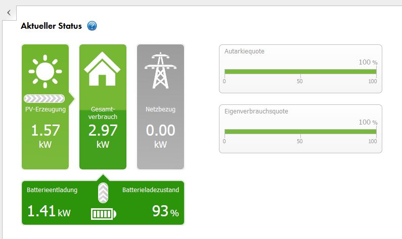 knappe 1400W aus der Batterie zusätzlich. Sinkt die PV Leistung abends, sinkt auch der