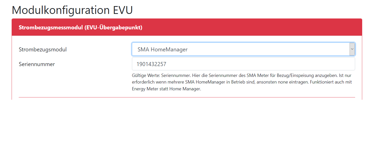 Ich habe bei mir 1 x SMA HomeManager 2.0 (wird als EVU-Kit angesteuert), 1 x SMA EnergyMeter für unsere Alt-PV-Anlage und 1 x SMA EnergyMeter für unsere "dumme" Wärmepumpe - und die Wärmepumpe würde ich gerne in openWB auslesen.