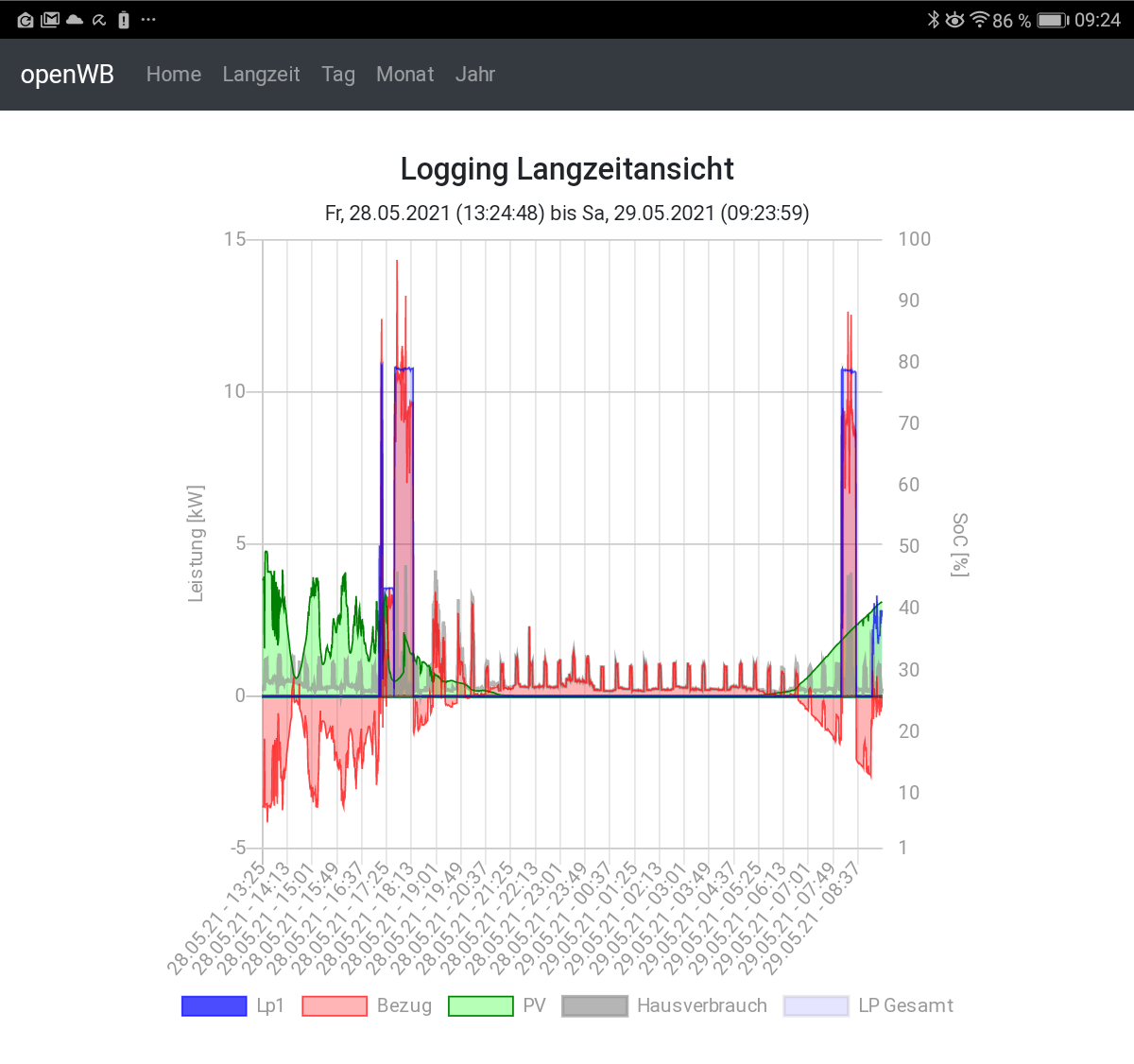 In der Anzeige und in der Grafik sind die Ladevorgänge enthalten.