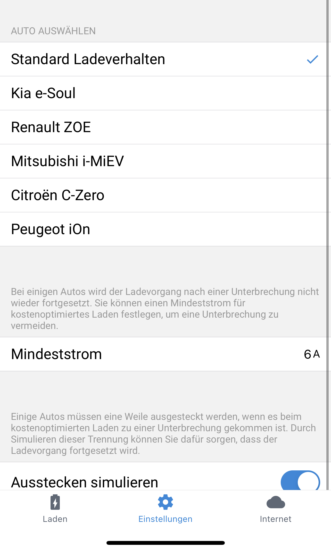 Aktuell geht der e-2008 immer noch auf Error sobald mit der App umgeschaltet wird. Steckt man zwischen dem Umschalten den Stecker frisch an das Auto schaltet es auch sauber um.