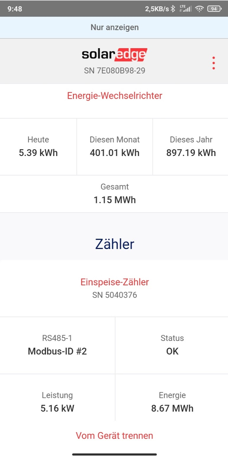 Leider kann ich die PV-Funktionen nicht nutzen, da die Daten des SolaredgeWR nicht zuverlässig bei OpenWB ankommen.