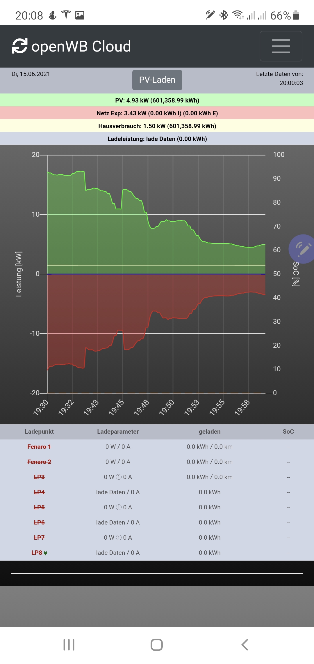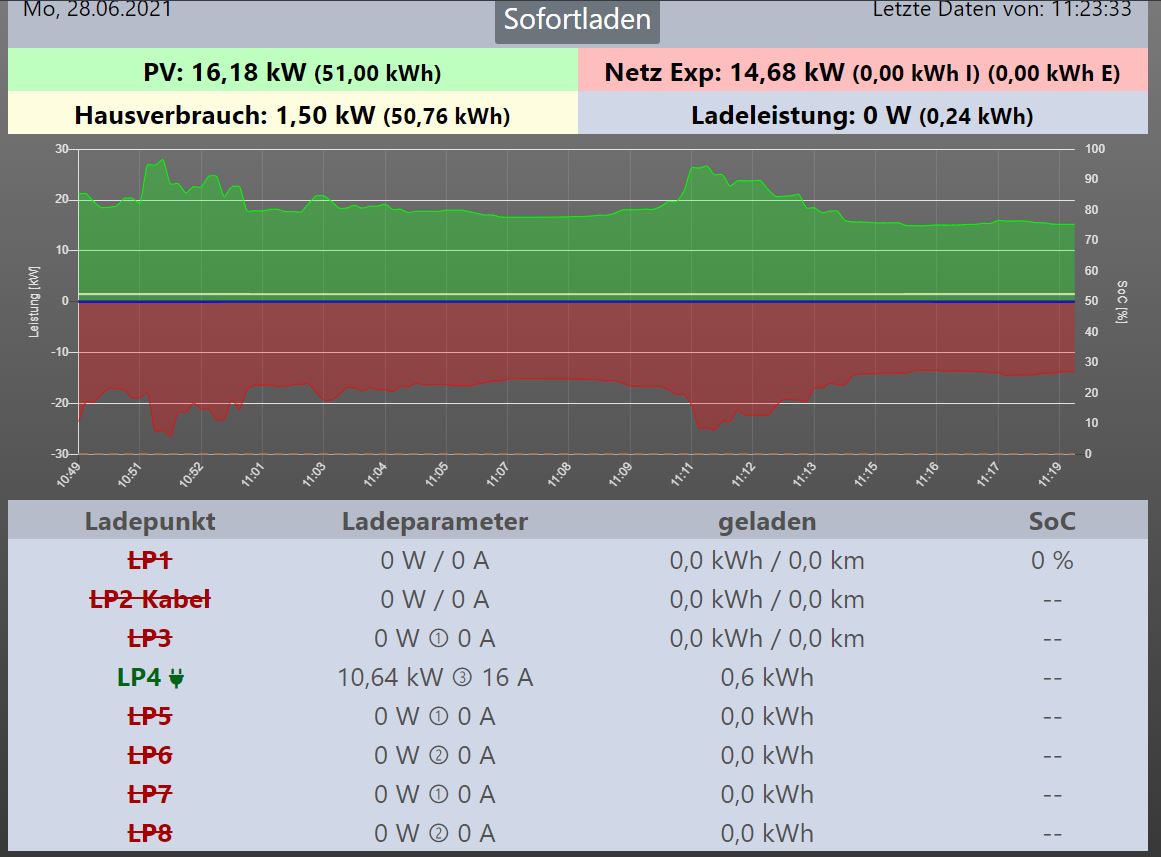 Weiterhin steht zwar bei LP und unter Status die Ladeleistung, in der Hauptleiste oben, wird die Ladeleistung nicht angezeigt und damit auch Netz-Export falsch dargestellt.