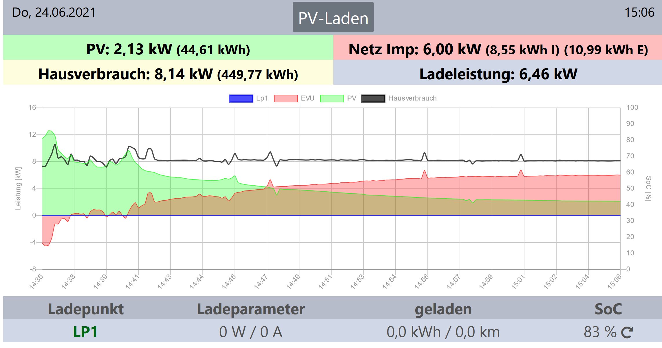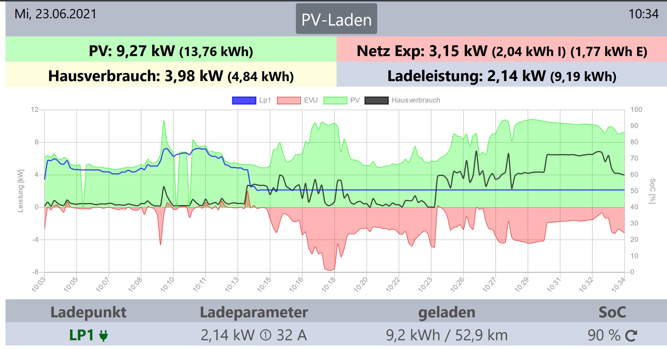 Aktuell passiert es beim Laden des I3, dass (bei unterschiedlichen SoCs) die Überschussladung plötzlich zum Festwert "einfriert".
