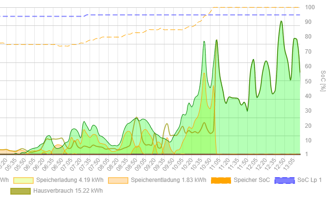 Verwundert war ich über die korrekte Anzeige des Hausverbrauchs wenn der Speicher nicht voll ist.