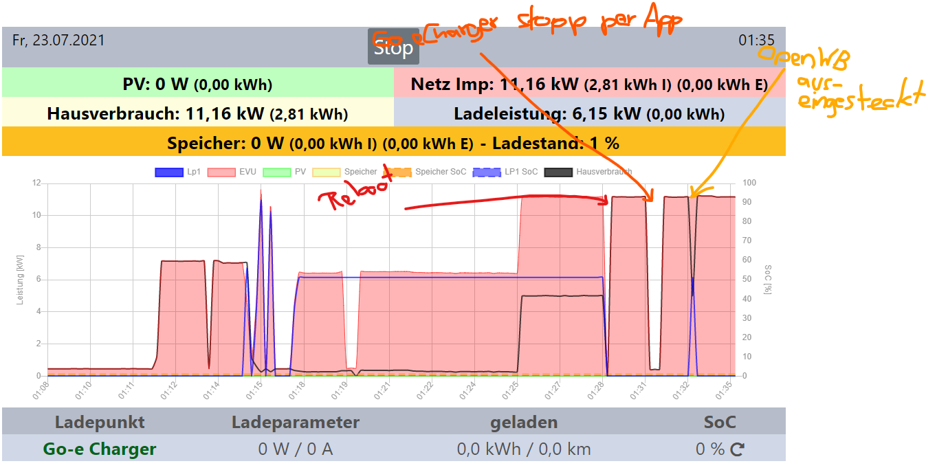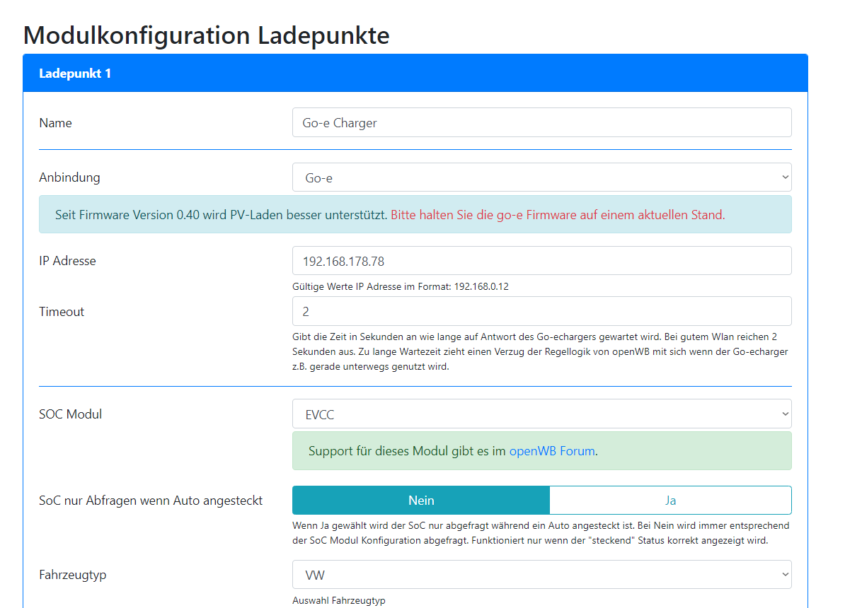Die Anzeige in der OpenWB oberfläche zeigt zwar die Wallbox läd, aber ich kann es nicht einstellen. Nichtmal stoppen.