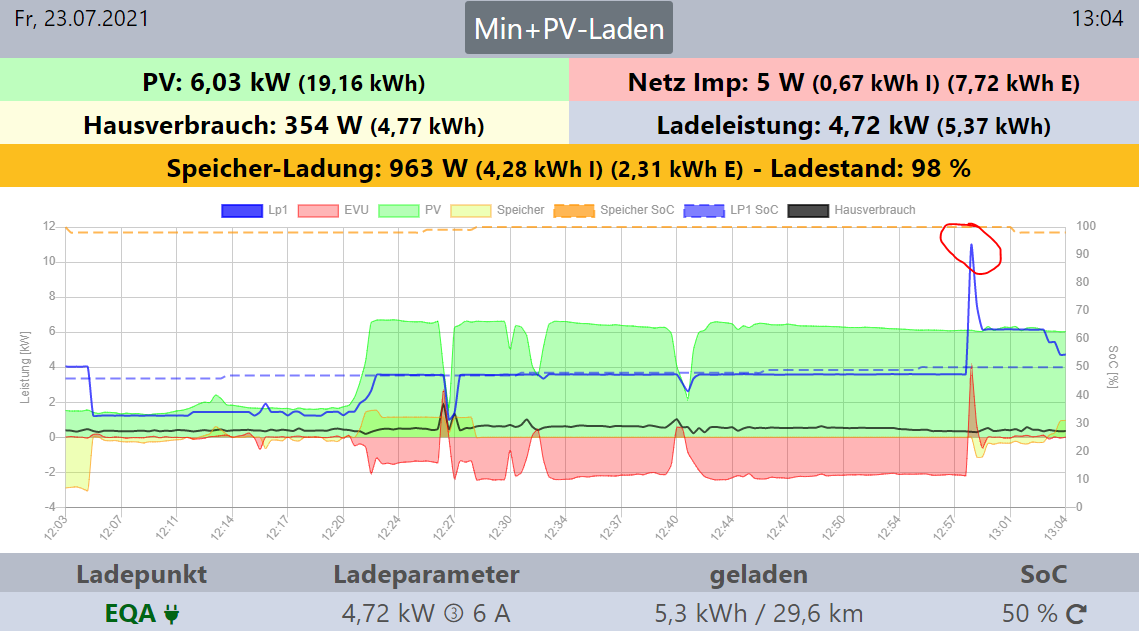 Das ganze oWB-System hat eine gewisse Trägheit - insbesondere in der Anzeige. Der Peak ist kein wirkliches Problem, schließlich werden dort keine kWh verbraten.