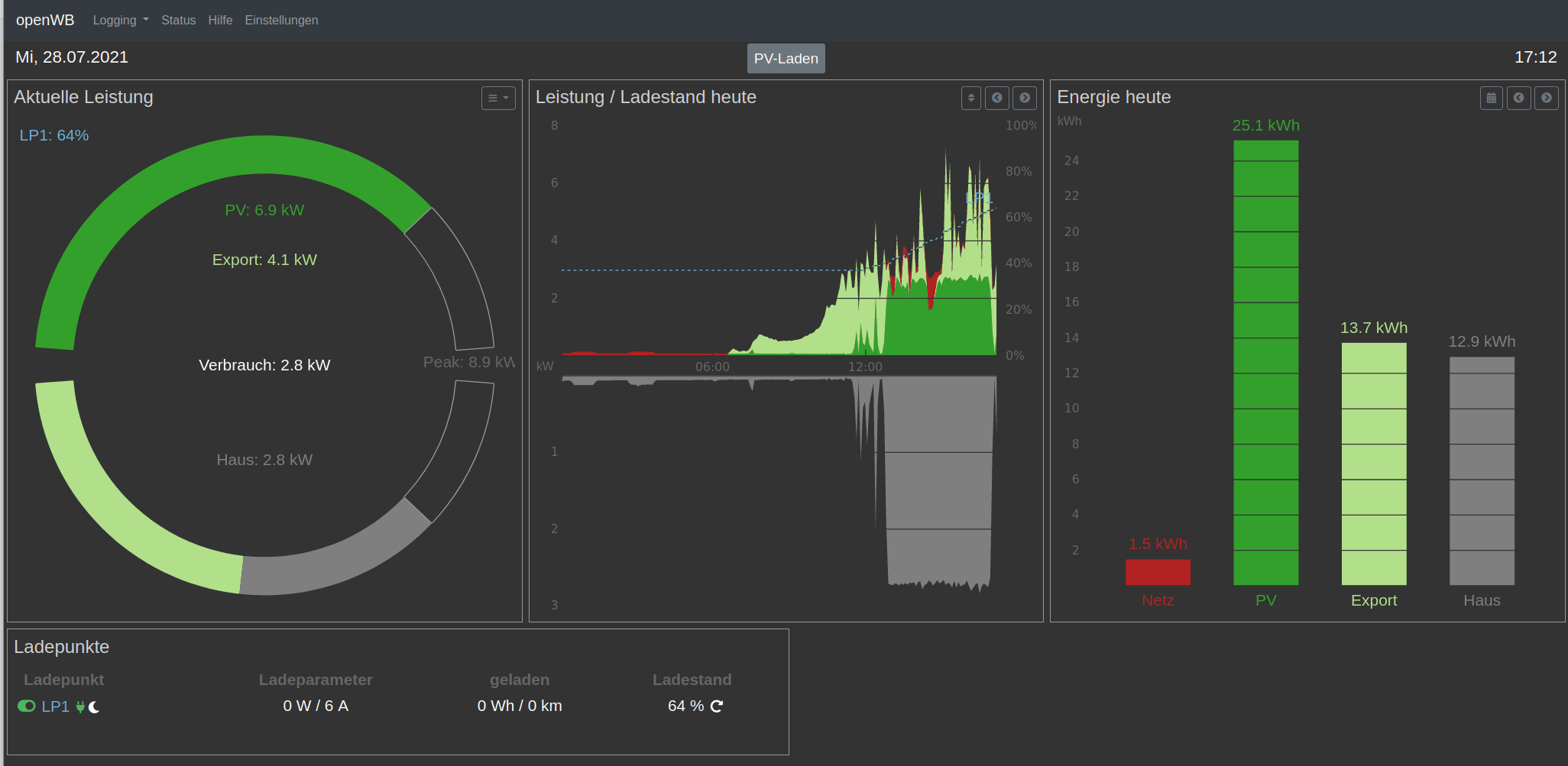 OpenWB duo Version: 2.1 SOC: VWid; EVU: SMA HM20; PV: SMA EM10