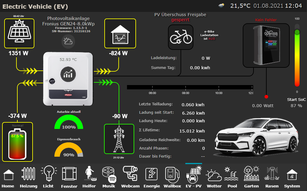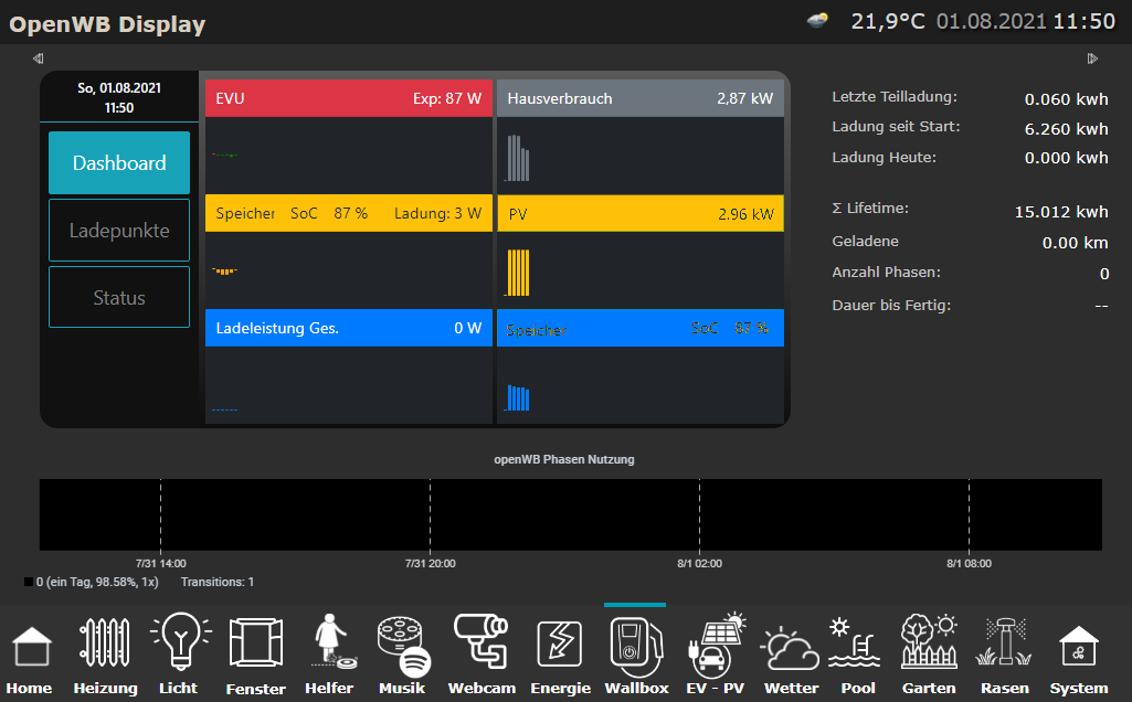 Somit gehört für mich der Hausspeicher + PV in eine Zeile gegenübergestellt und auch Ladeleistung + Speicher SoC sollten sich in der Ansicht gegenüber stehen.