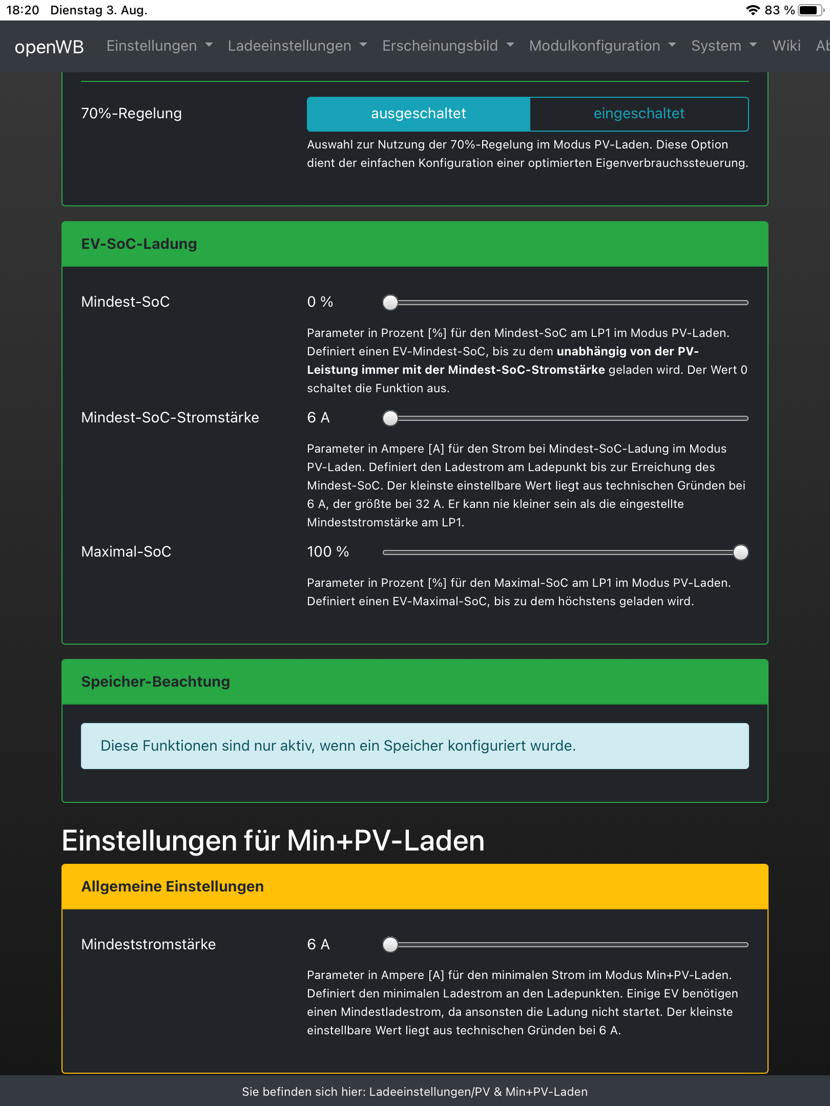 Hier die Einstellungen: Obwohl ich Überschussladen gewählt hab geht das Spiel auch noch weiter ohne Überschuss, dann nimmt er Netzstrom Danke & Gruß - Hubert