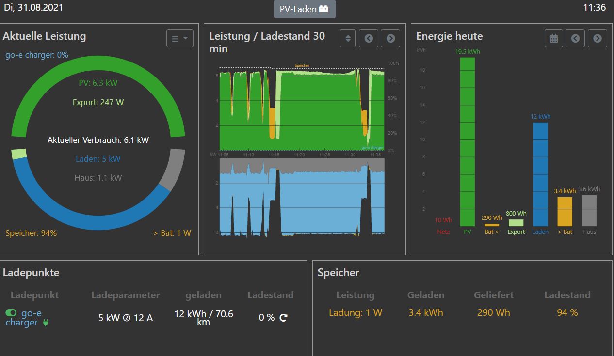 seit gestern läuft mein Überschuss-Laden mit der go-e (Q-Sells) mit der RCT Anlage.