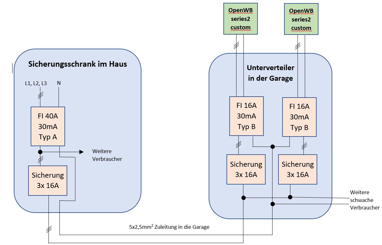 wenn demnächst meine 2 bestellten openWB series2 custom geliefert werden möchte ich mich vor dem Anschließen nochmal versichern ob das Konzept des Anschlusses so ok ist.