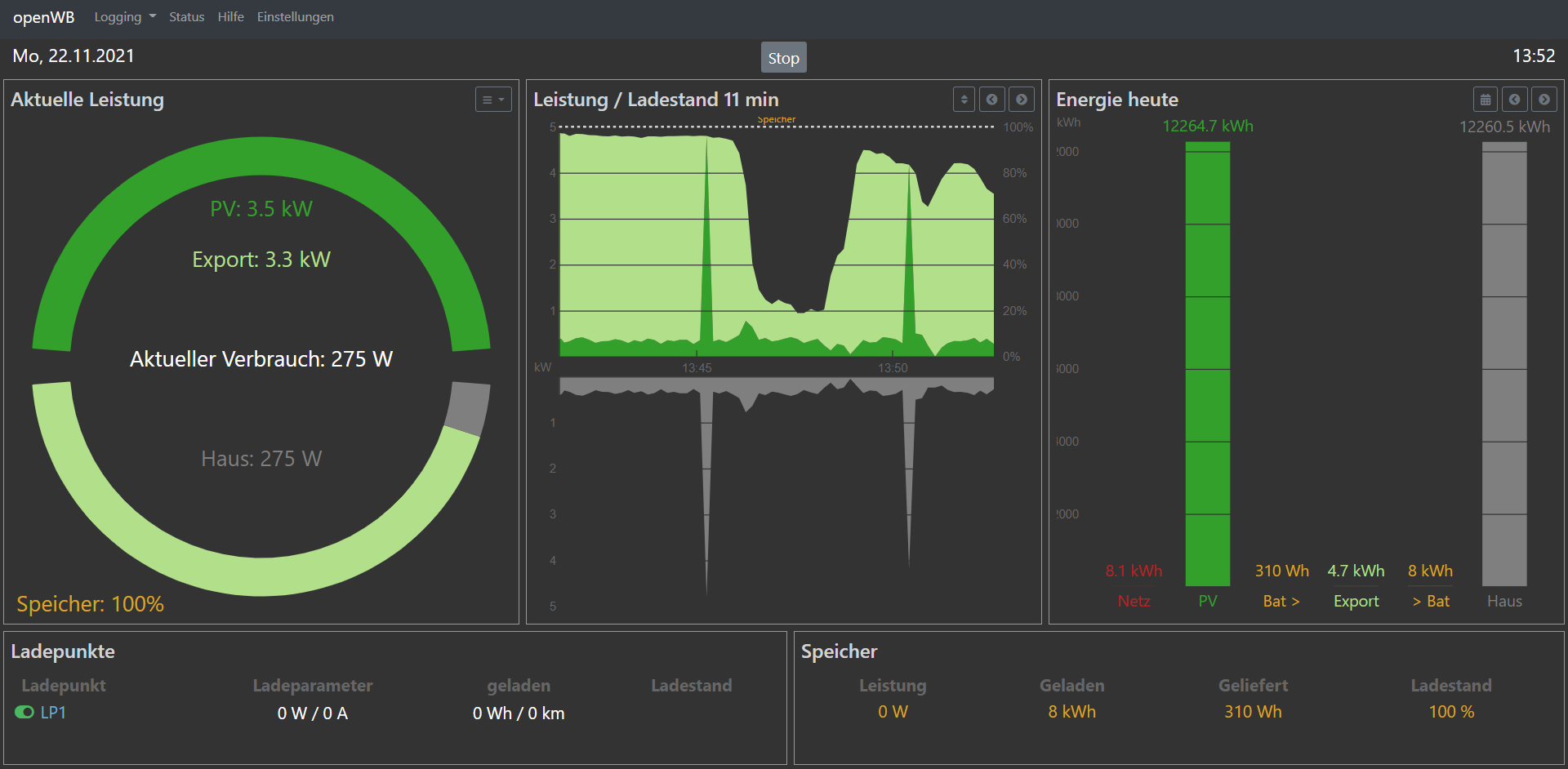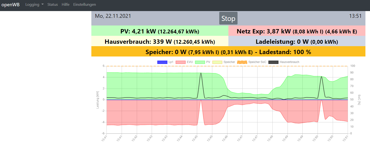 Edit: dass openWB den PV-Gesamtertrag anzeigt habe ich angenommen, weil zwischen dem Wert in openWB und dem SunnyPortal (12,243 MWh) nur wenige kWh liegen. Oder könnte es sein, dass das EVU-Modul das Problem ist und openWB die Differenz mit PV auffüllt?