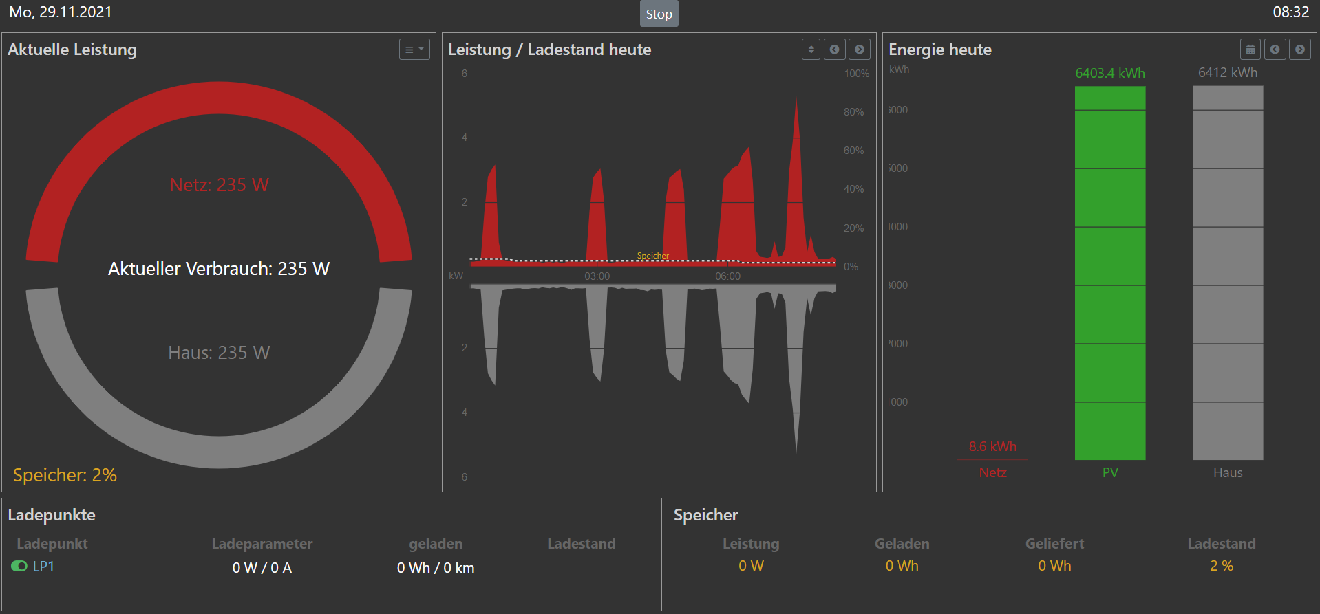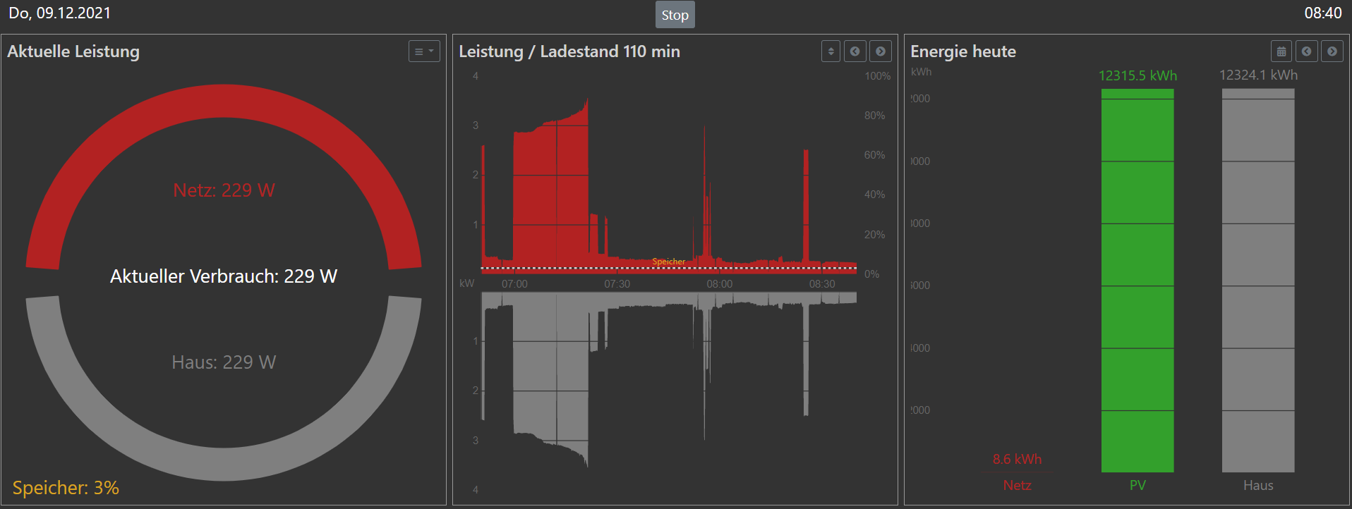 Der Wert für PV-Tagesertrag und Hausverbrauch war nur am letzten Montag wie unten gezeigt viel zu hoch angegeben (12 MWh), den Rest der Woche war's ok. Die 12 MWh stehen aber weiterhin in der Historie.