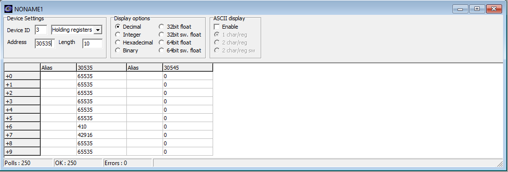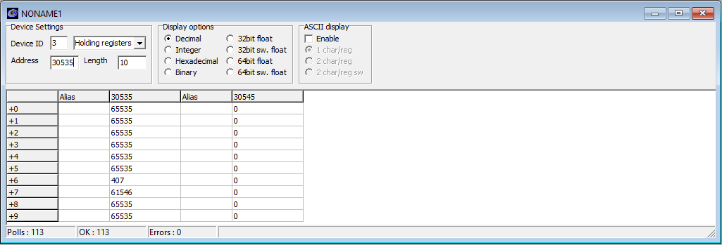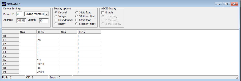 Ich hätte jetzt angenommen, dass der Check im Modbus Simulator (Register 30535 für Tagesertrag?) erst dann wieder Sinn ergibt, wenn die Werte in openWB falsch angezeigt werden. Aber auch jetzt stehen dort für mich nicht plausible Werte, wenn Register 30535 den Tagesertrag anzeigen soll (müsste ja eigentlich 0 sein):