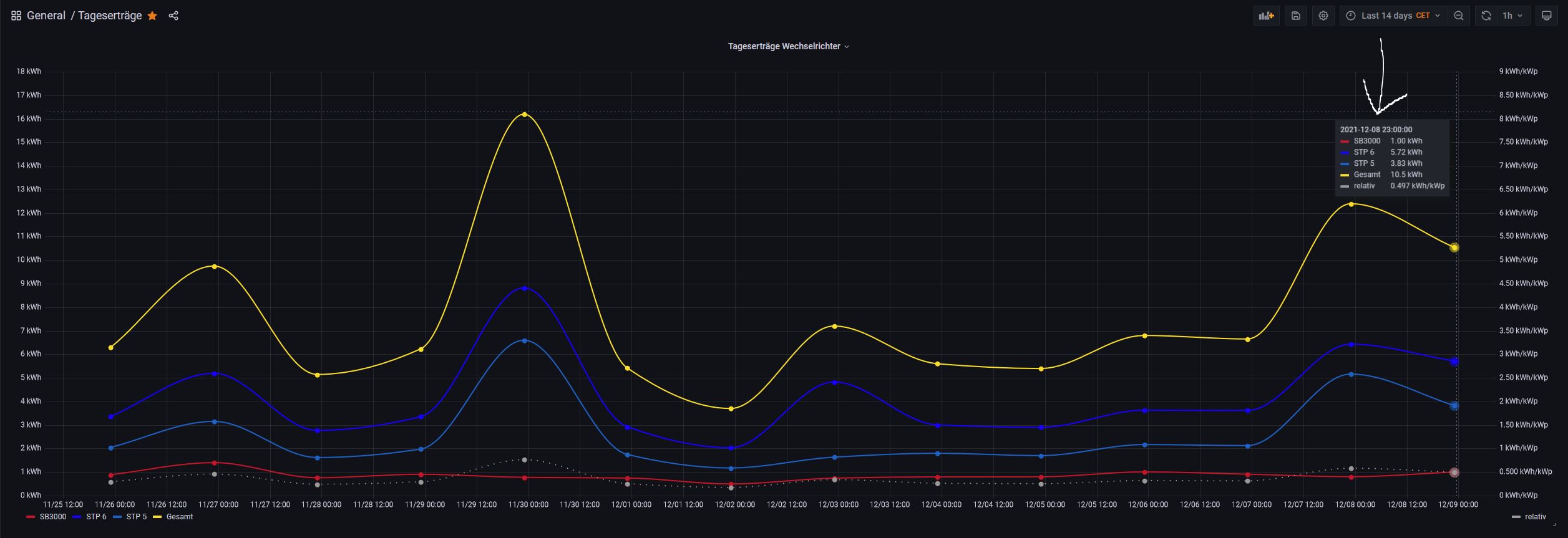 Und nachdem die letzten Tage und heute alles fein aussah, ist seit gerade eben der Tagesertrag wieder auf den Gesamtertrag gesprungen :?