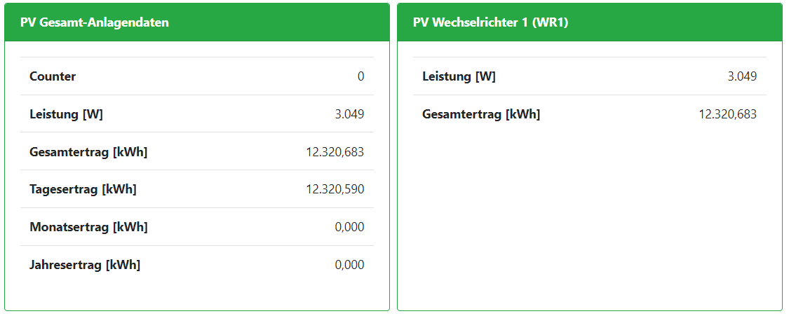 openWB arbeitet m.W. nach nur mit absoluten Zählerständen und nicht mit Tageserträgen.