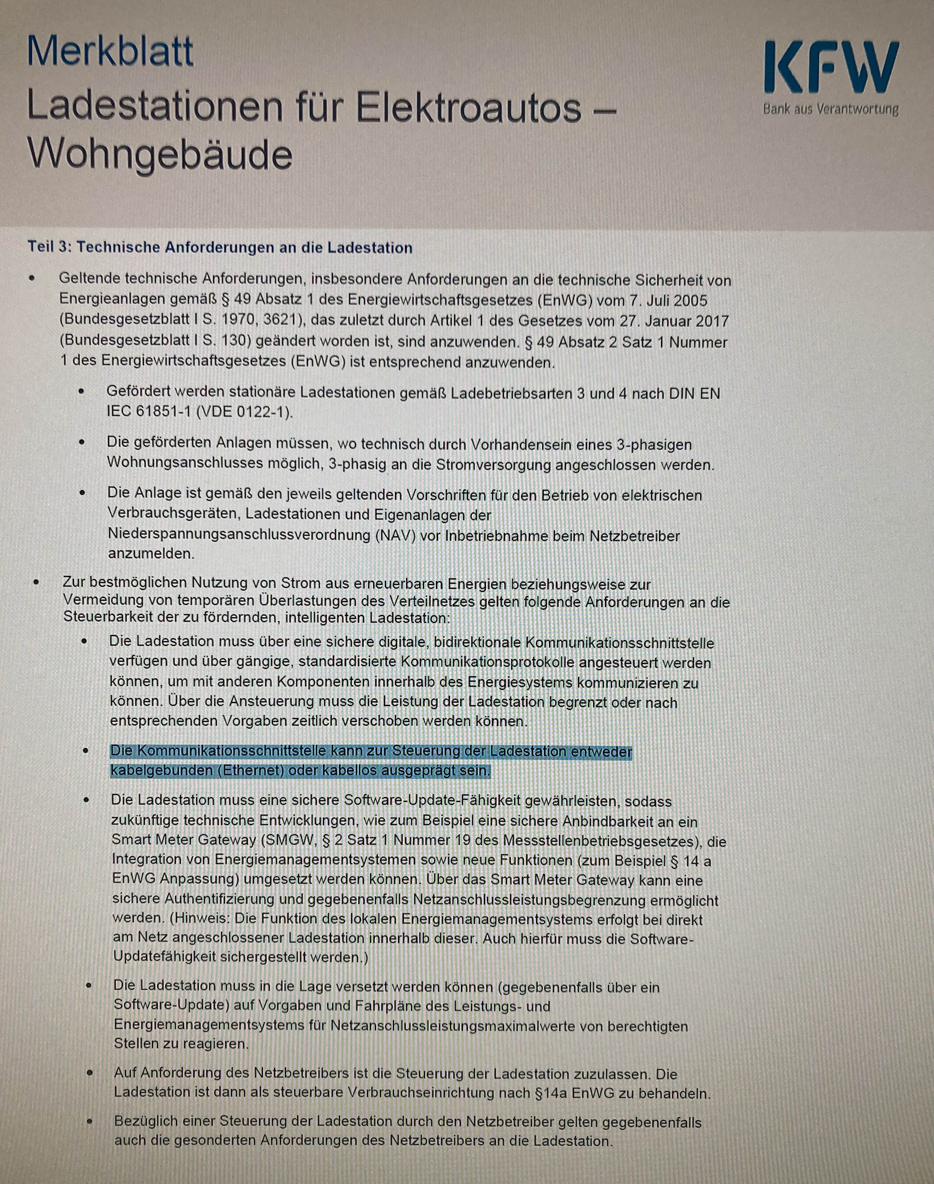 Wenn ich die Anforderungen der KfW richtig interpretiere dann ist Punkt 2 der Wifi bzw. Ethernetanschluss…