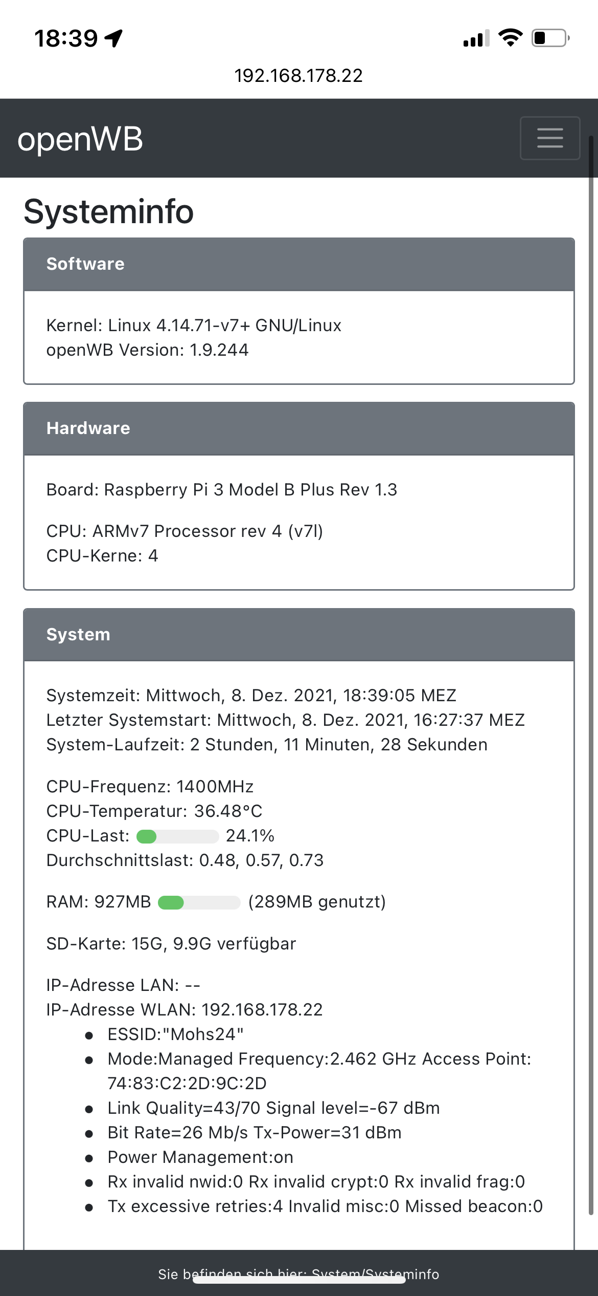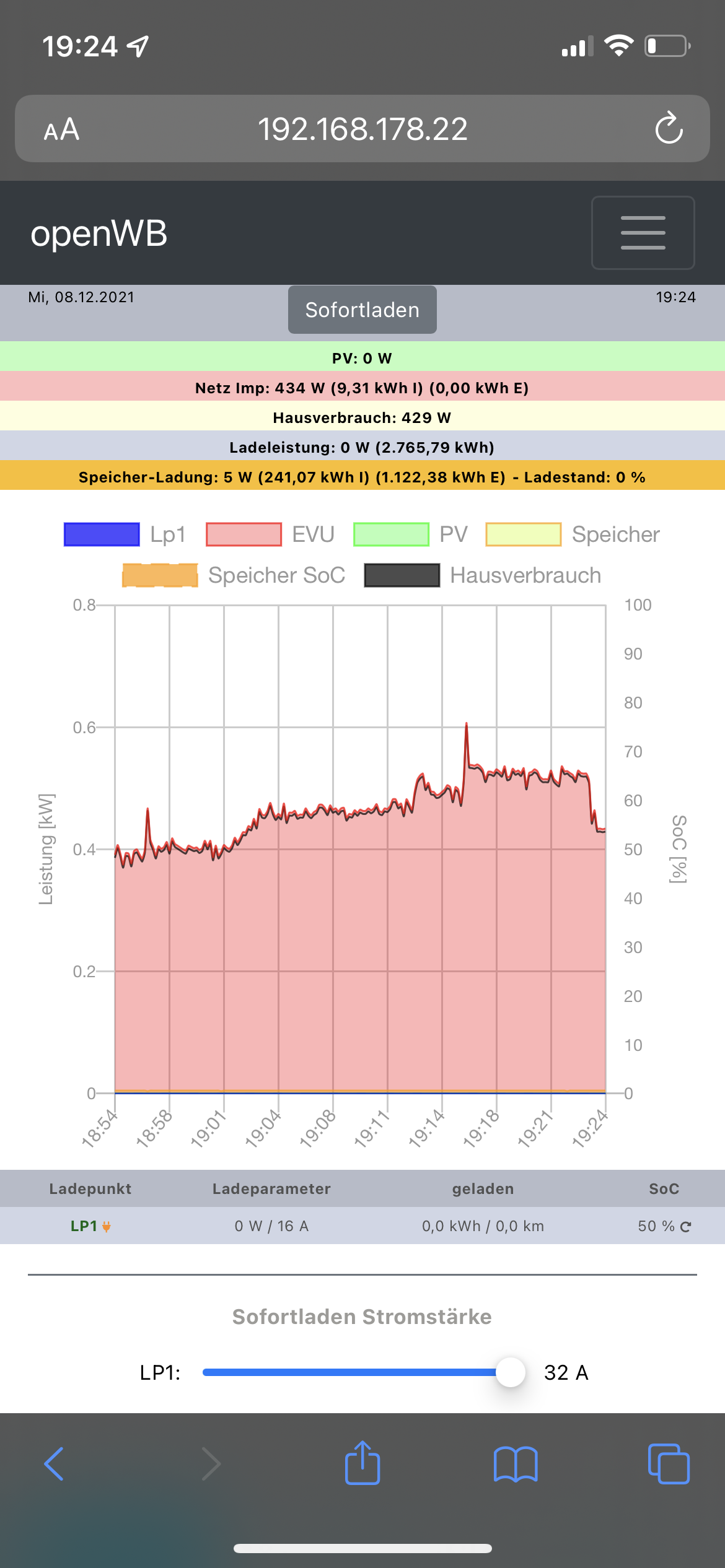 Openwb wurde mit aktueller Stable Version neu bespielt. Keine Änderung.