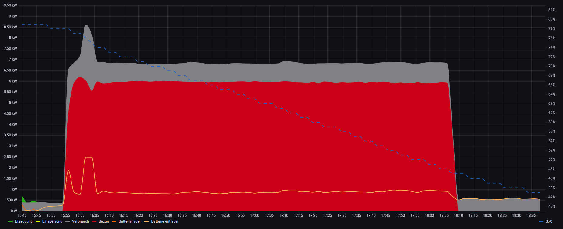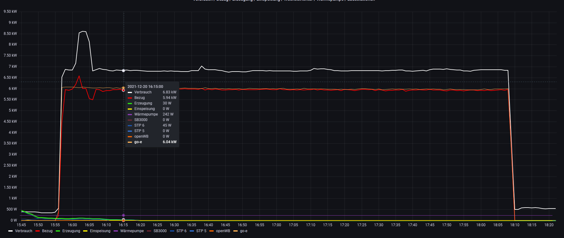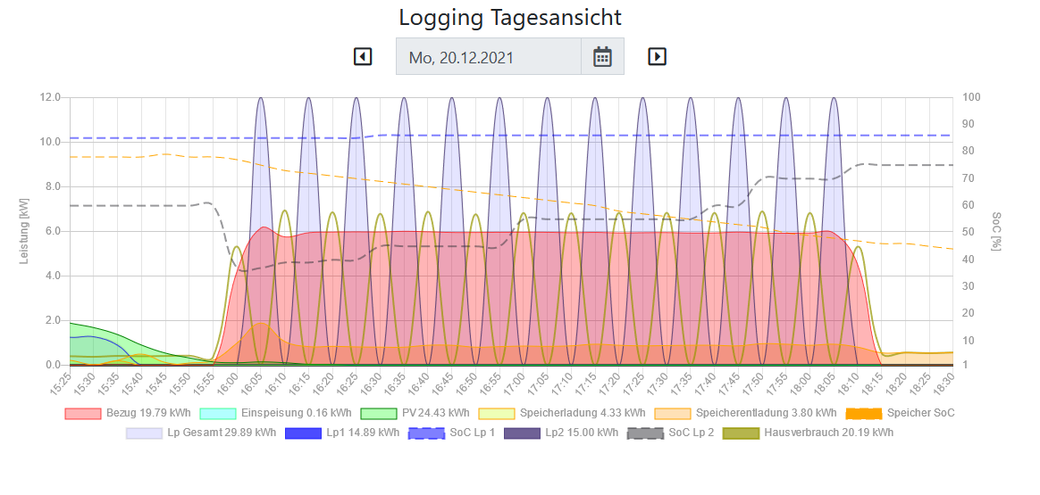 Das ist die Ladung über den go-e, wobei nur Sprünge in vollen kWh (12kW- Spitze) angezeigt werden.