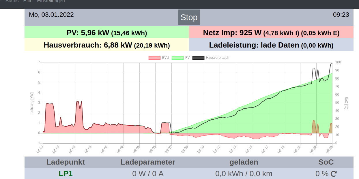 Im Zählerschrank befindet sich das EVU-Kit erworben hier vom Shop und in der Garage hängen 2 SMA Wechselrichter (SMA SB 2.0-1VL-40 und SMA STP 25000TL-30) .