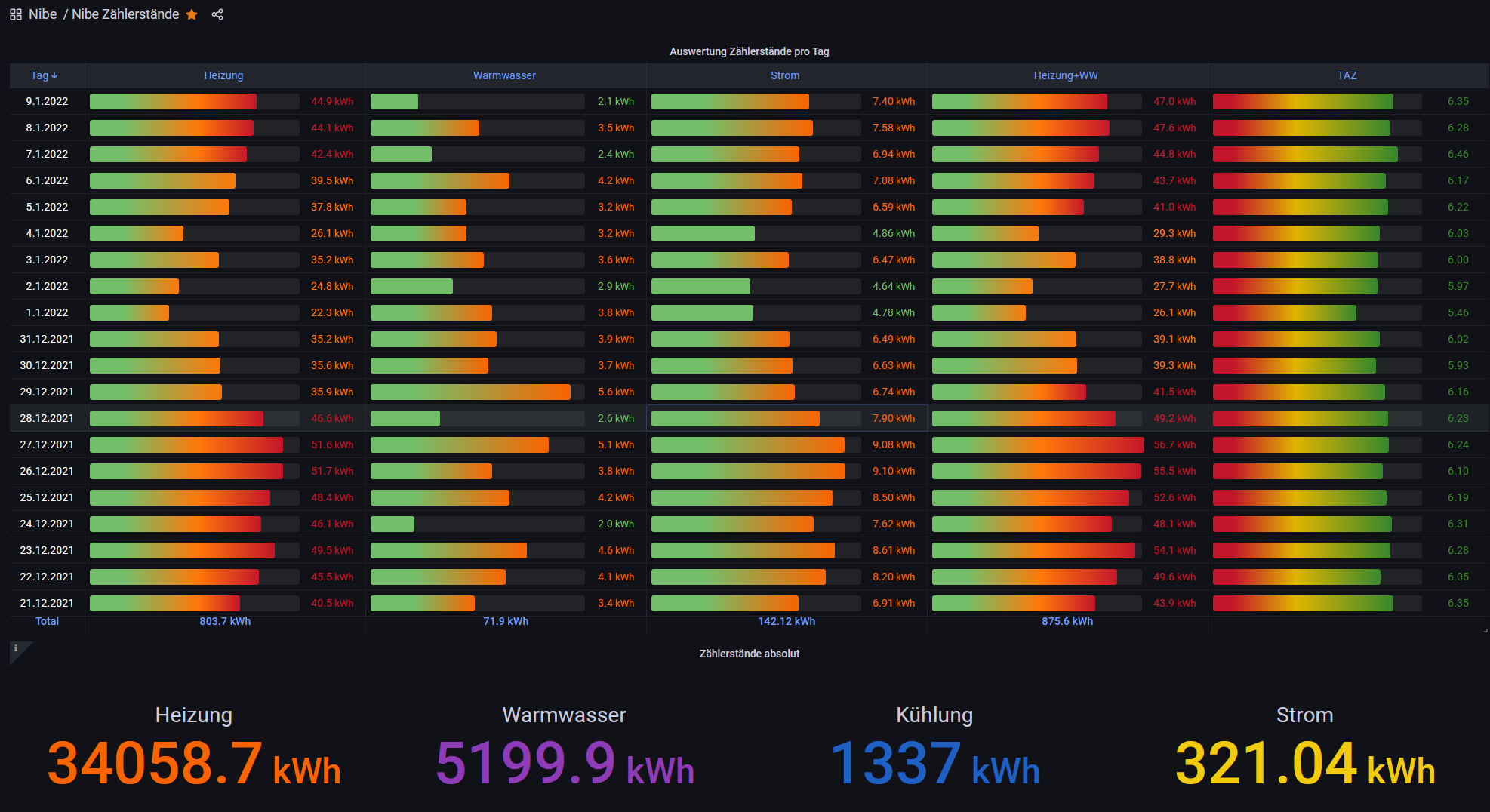 Dazu noch Speicher, PV und go-e mit SDM ausgestattet und alles an einen RPi per RS485. Das ganze dann in Node-Red im 2s abgefragt: In Grafana eine Tages/Monatsauswertung: ich hatte die Werte auch mal per MQTT in Smart Home 2 der openWB geschrieben, was aber nicht dauerhaft klappte, mal stand die Leistung da, mal 0W.