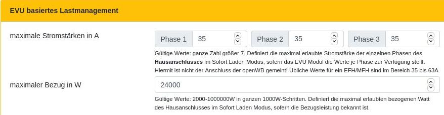 Was hätte ich vor der Leistungserhöhung in das openWB Lastmanagement eintragen müssen? 50A passend zum SLS oder 35A passend zur bestätigten Leistung seitens VNB?
