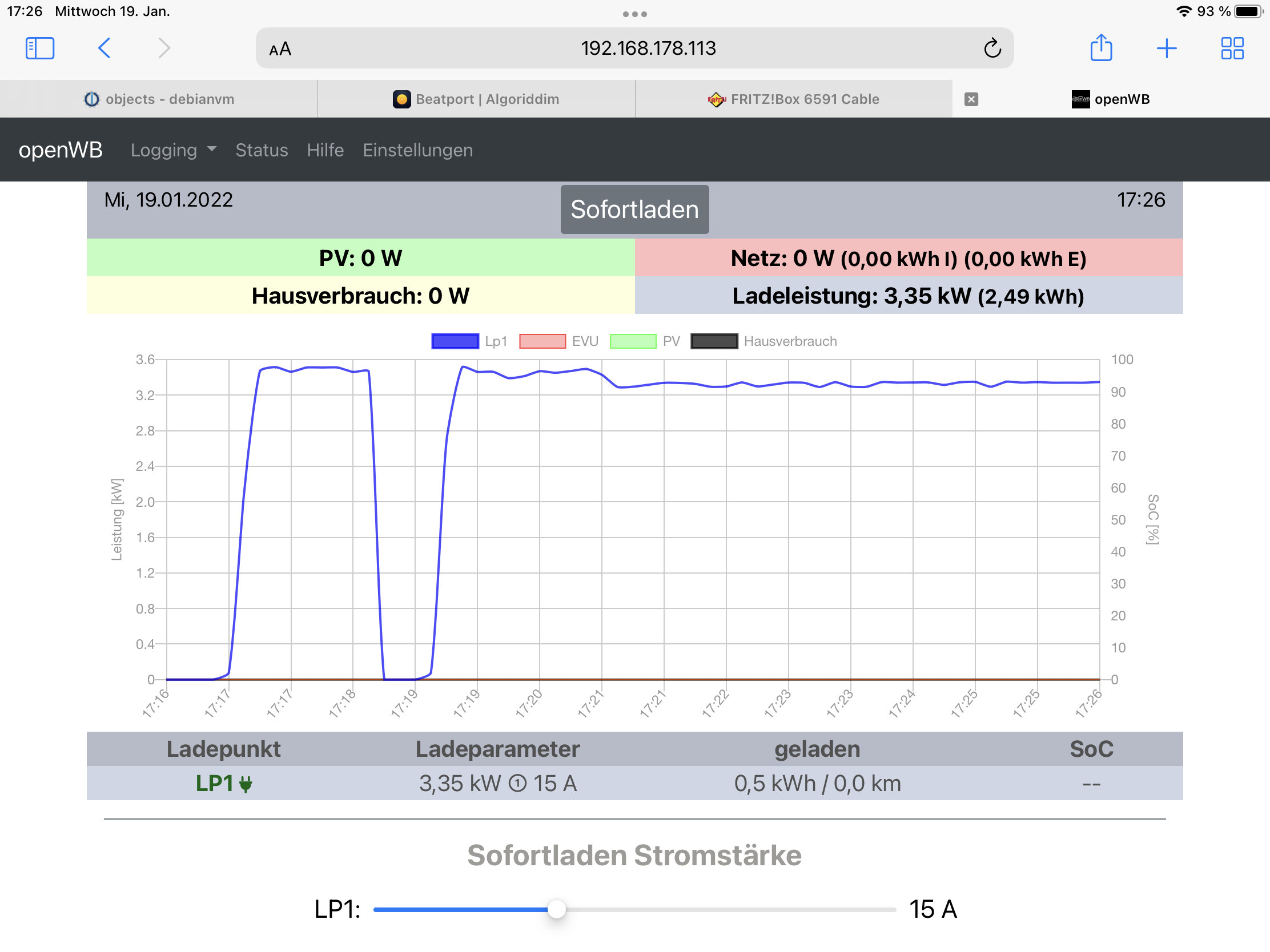 Was ist denn beim Sofortladen eingestellt?