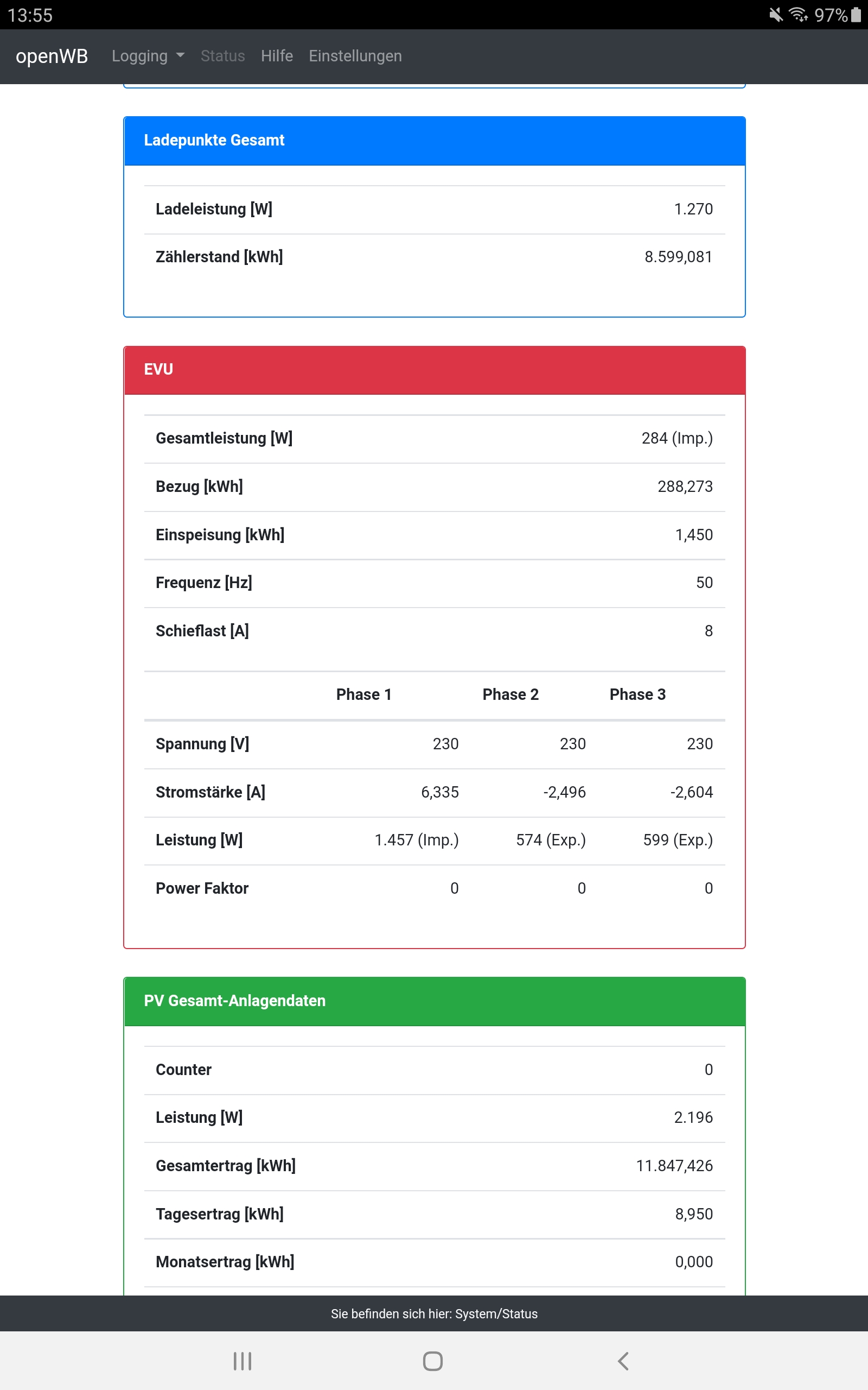 WB: 1 x openWB custom V 1.9.304, 1 x openWB custom V 2.1.7 Beta 2