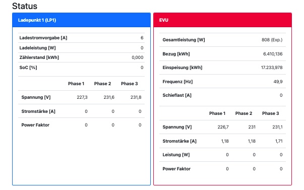 ich speise die EVU Werte via MQTT ein und sie werden auch korrekt angezeigt. Jedoch wird auf der Status Seite unter EVU die Leistung immer mit 0 angegeben. Da diese Werte nicht via MQTT abgefragt werden, sollte einfach eine Multiplikation aus Spannung und Strom durchgeführt und angezeigt werden.