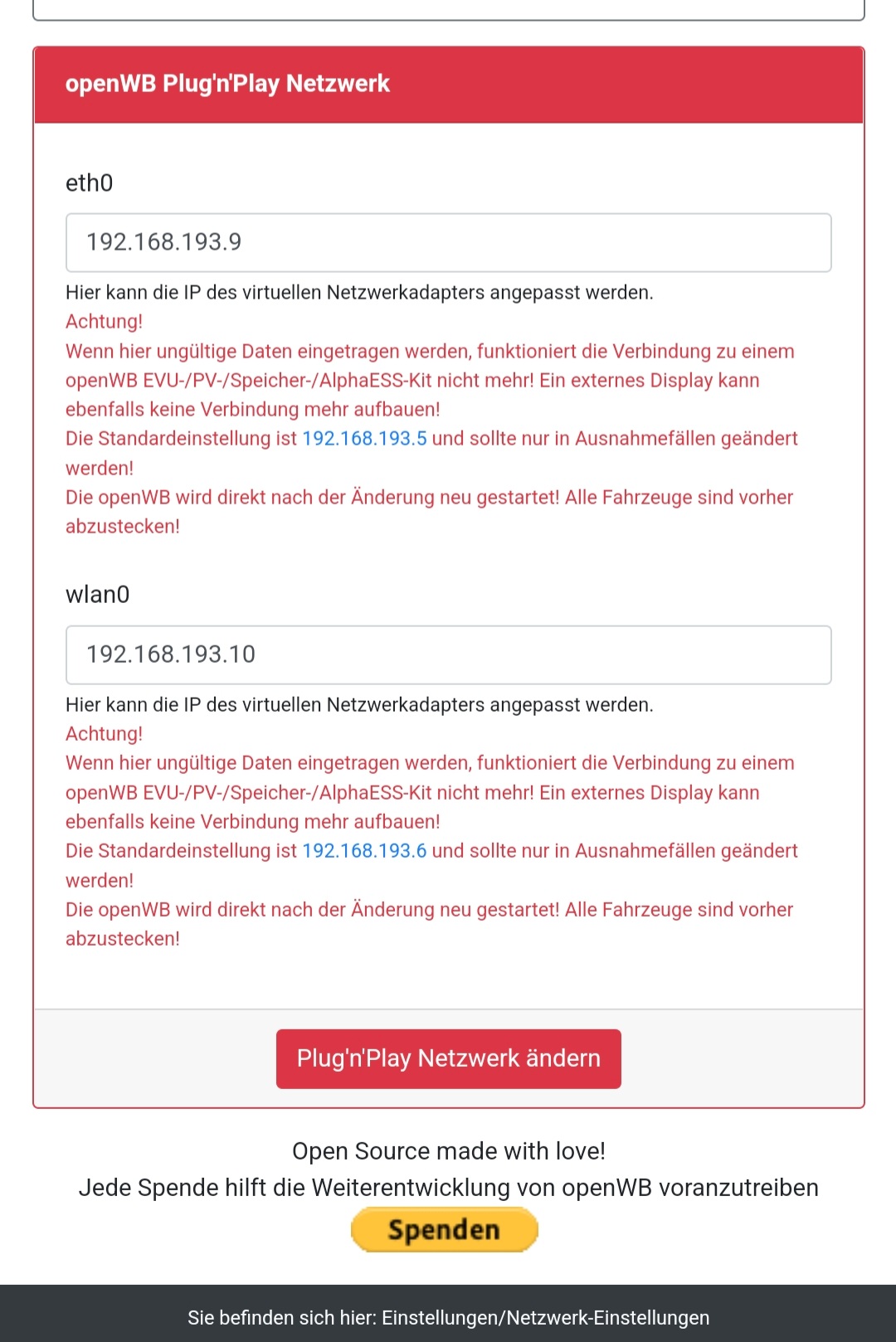 192.168.193.5 Die IP der openWB im LAN