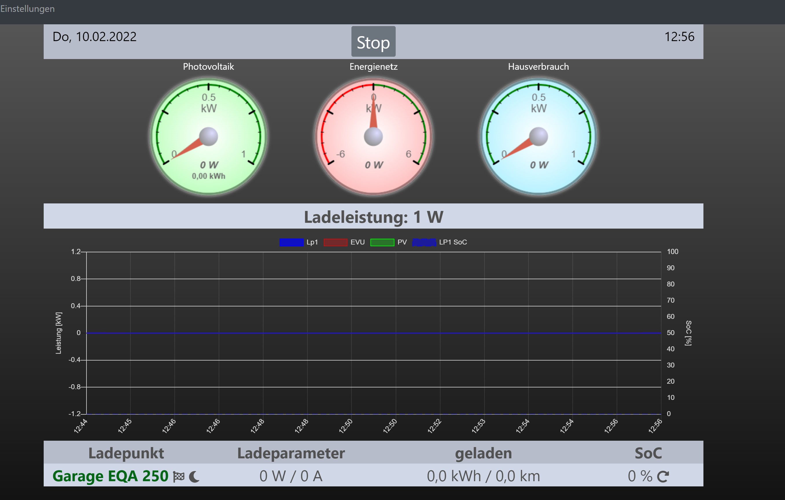 10kWp PV mit SMA Tripower 10000TL-10 (PE11 mit SDM72V2); 2,4kWp mit Solis 2.5 G6 (EE11 mit SDM120). OpenWB Standard+. EVU EM540 an einem Raspi mit Venus OS. BEV Mercedes EQA 250+ (07/2025)