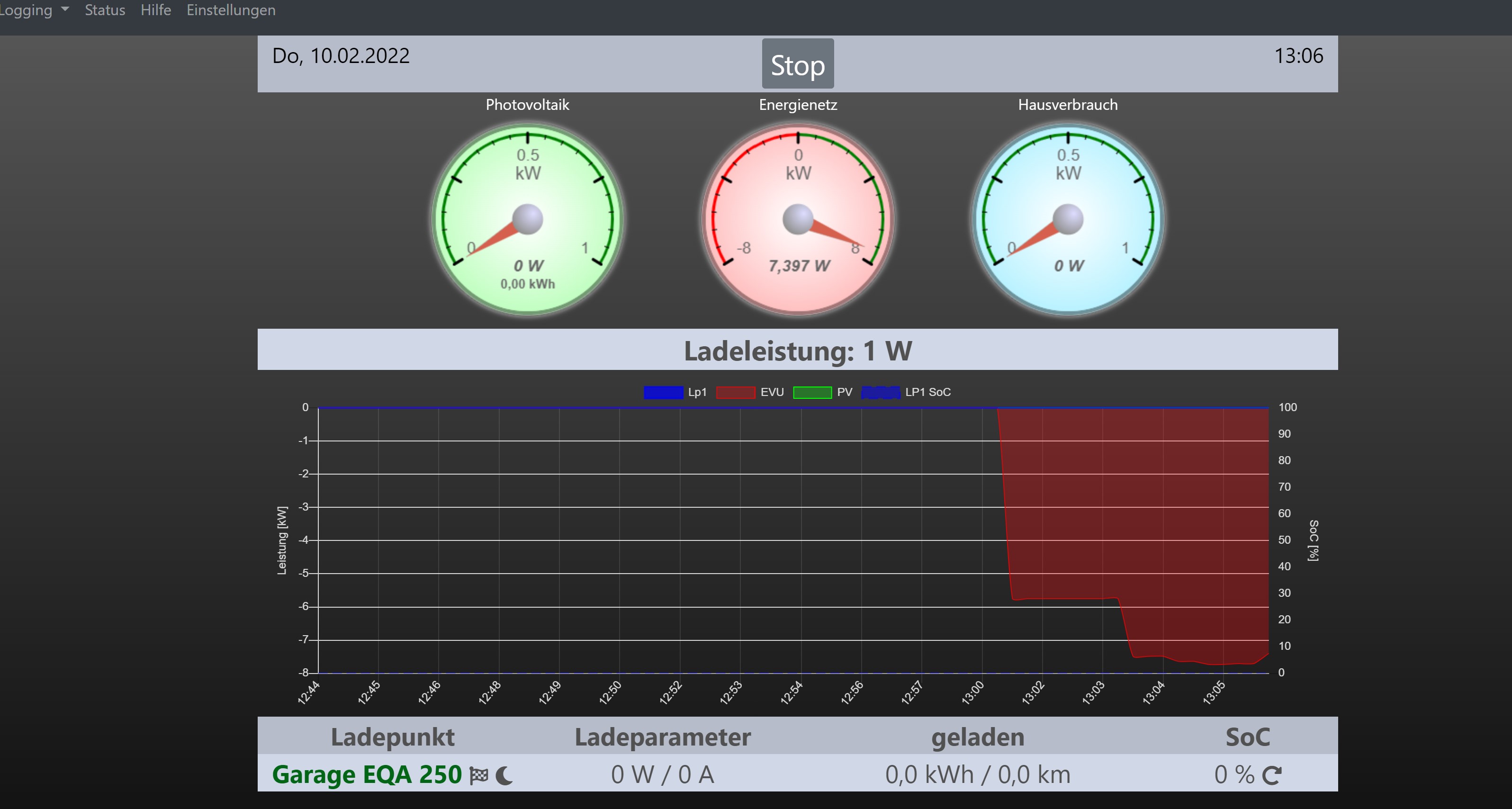 2022-02-10 14:40:16: pv1watt -7515 pv2watt pvwatt -7515 ladeleistung 0 llalt 0 nachtladen 1 nachtladen 0 minimalA 6 maximalA 17 (LV1) at 1268 loadvars loadvars.sh