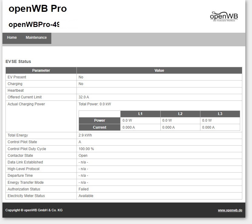 wie bereits erwähnt ist meine OpenWB-Pro (Charging Stack Version0.9.14) zusammen mit der OpenWB-Standalone (1.9.255) in Betrieb.