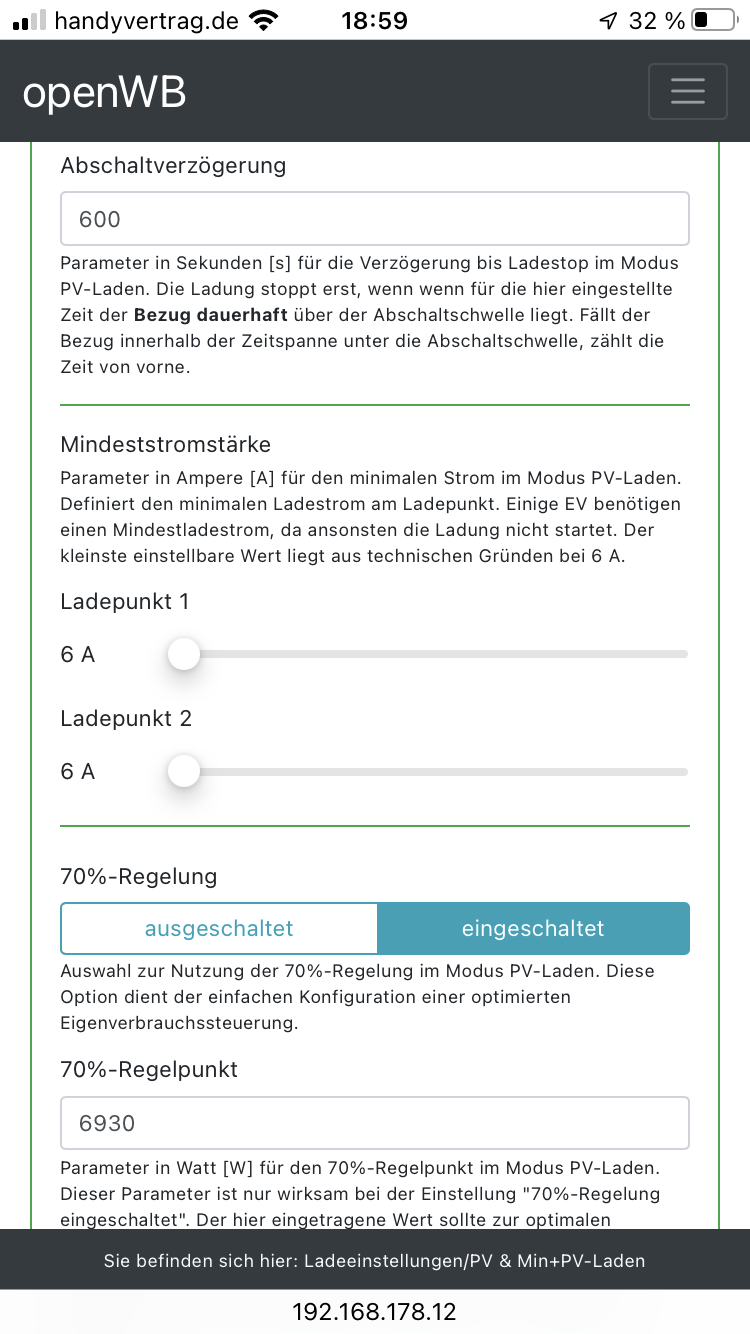 Welche Werte sind denn bei PV-laden alles eingestellt?