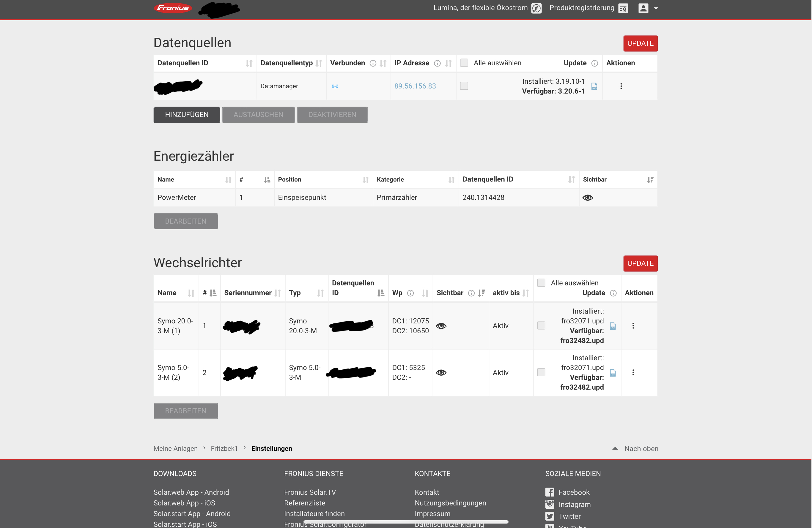 Vielleicht schaust Du aber parallel trotzdem nochmal nach auf welchen Revisionen Deine Firmware ist - Datamanager, sowie WR.