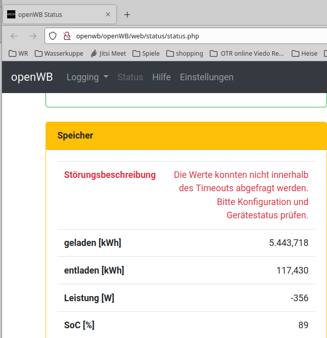 bei mir wird in der Statusansicht ein Fehler beim Abfragen der Speicherwerte angezeigt, --