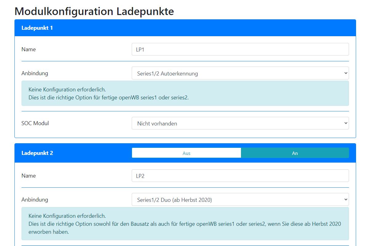 - Was muss ich machen um LP2 zu aktivieren? --> Modulkonfiguration --> Ladepunkte --> Ladepunkt 2 "AN" und dann "Series 1/2 Duos (ab Herbst 2020)"?