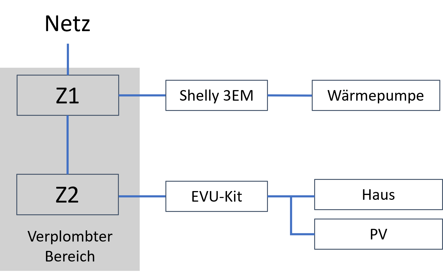 Die WP hat eine eigene Leitung Z1 (und sicher auch Abrechnung). Da darf mWn. auch nicht mit PV eingespeist werden, da ein Sondertarif gilt.