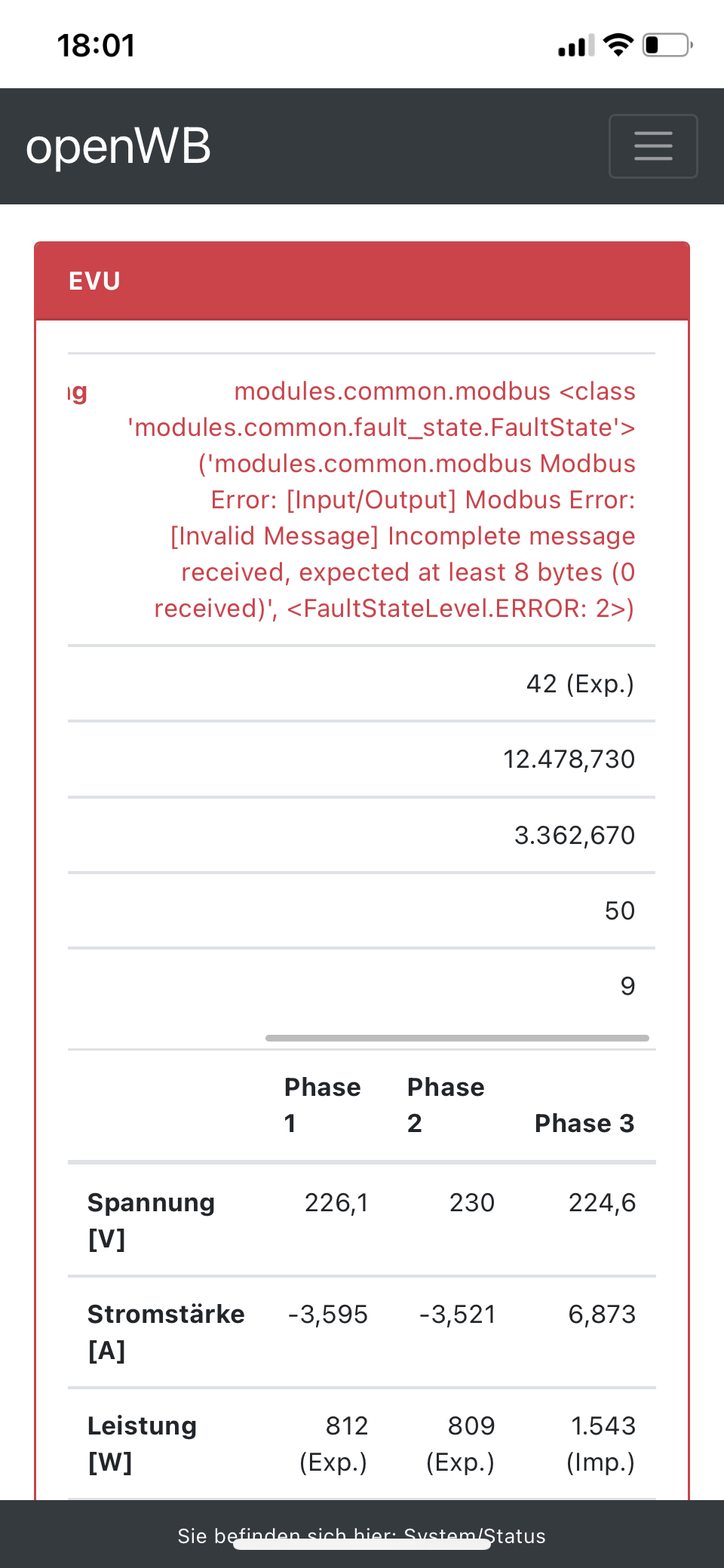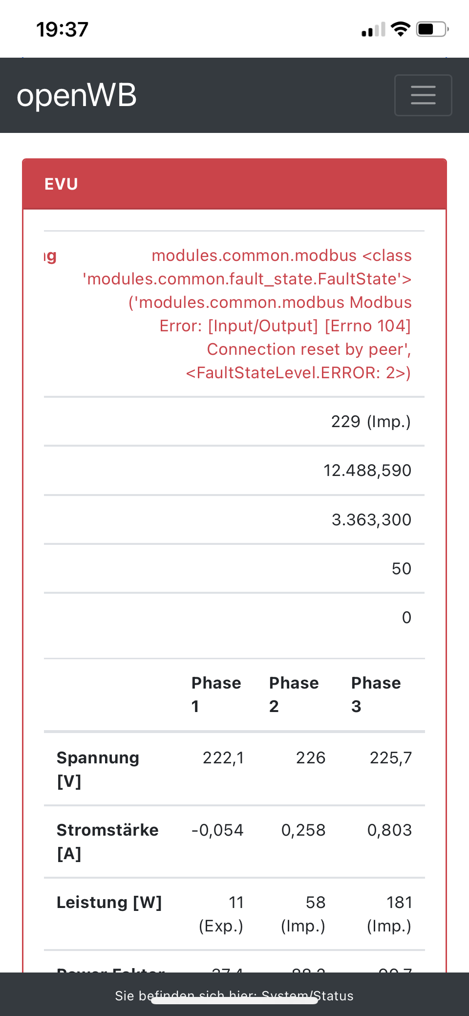 Wäre super, wenn ihr darauf antworten könntet. Ich habe eine openWB Buchse als LP und wüsste gerne, ob ich updaten muss.gorthon hat geschrieben: Mo Apr 25, 2022 4:17 pmWelcher Fehler denn?Fehler bei openWB mit Buchse als "nur Ladepunkt" behoben