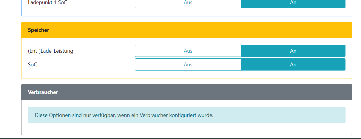 Ich wollte gerade meine Grafik Einstellungen ein wenig anpassen. Da ist mir der folgenden Hinweis aufgefallen, OBWOHL ich unter Smarthome2.0 zwei Verbraucher konfiguriert habe. Ich gehe mal davon aus, das mit Verbraucher die Smarthome(2.0) Komponenten gemeint sind - oder?