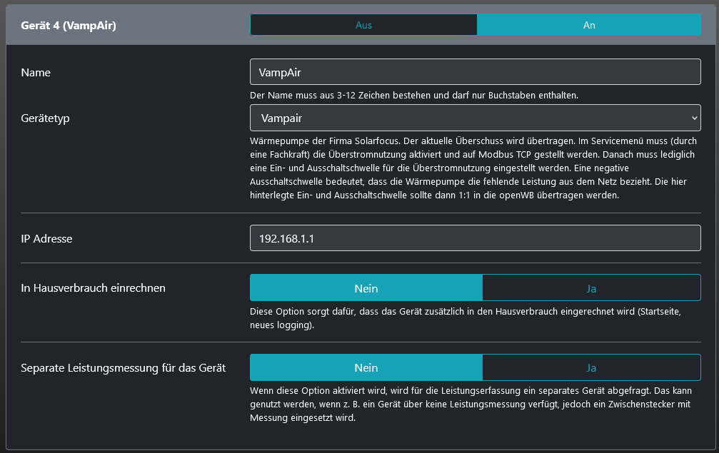 ich habe eine VampAir von Solarfocus, welche ich per Modbus und Node-Red steuere. Da meine Überlegung dahin geht, alles die openWB machen zu lassen, wäre meine Frage ob es man ein Modul für die VampAir erstellen könnte.