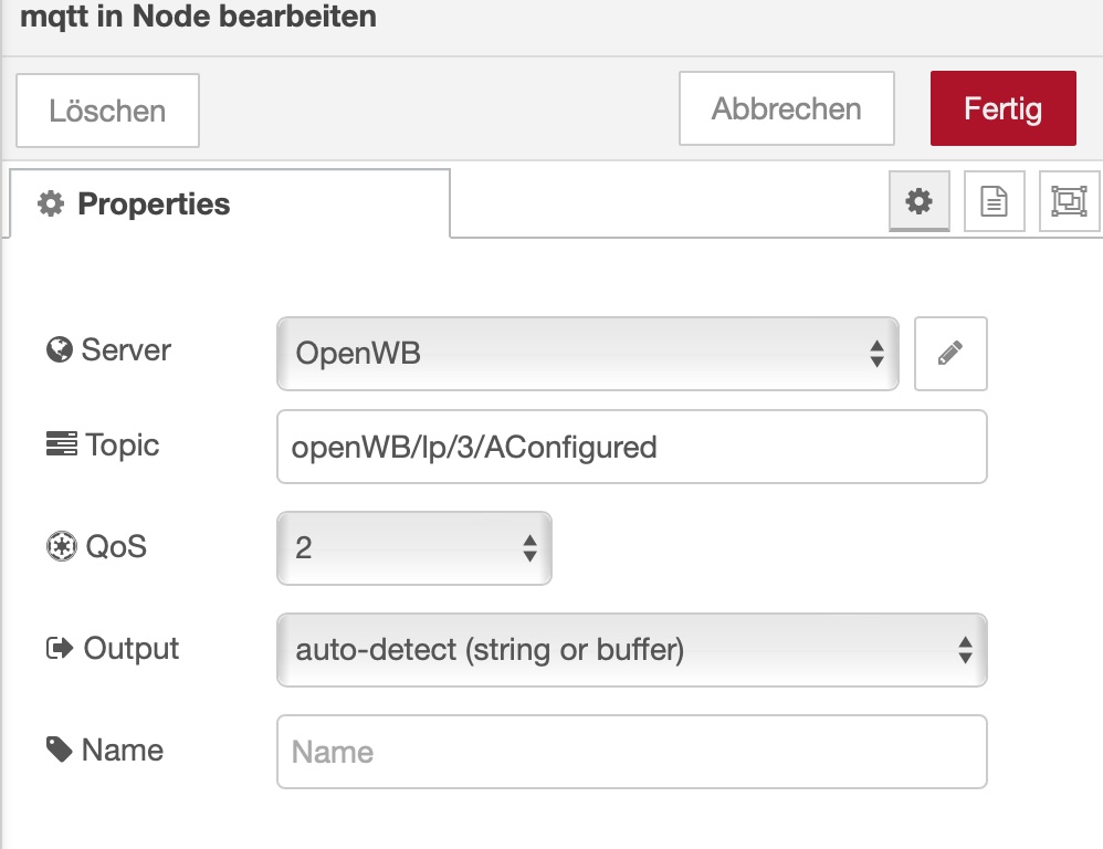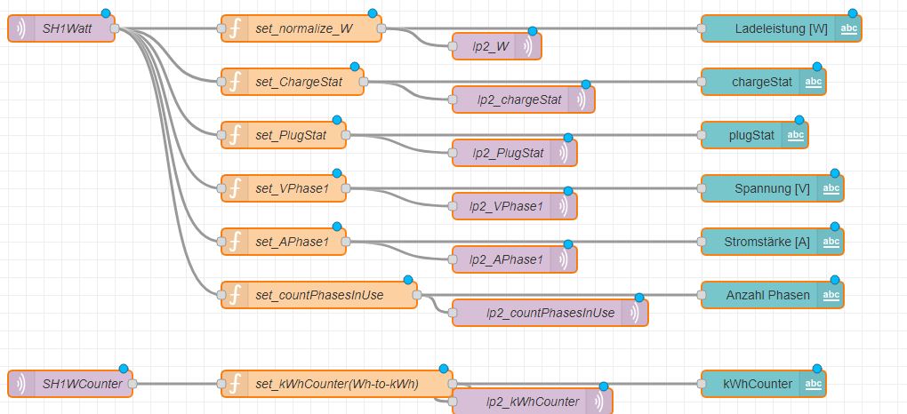 Die relativ einfache Lösung in NR war, die SH2.0 Status in diesen Ladepunkt zu via MQTT zu spiegeln.