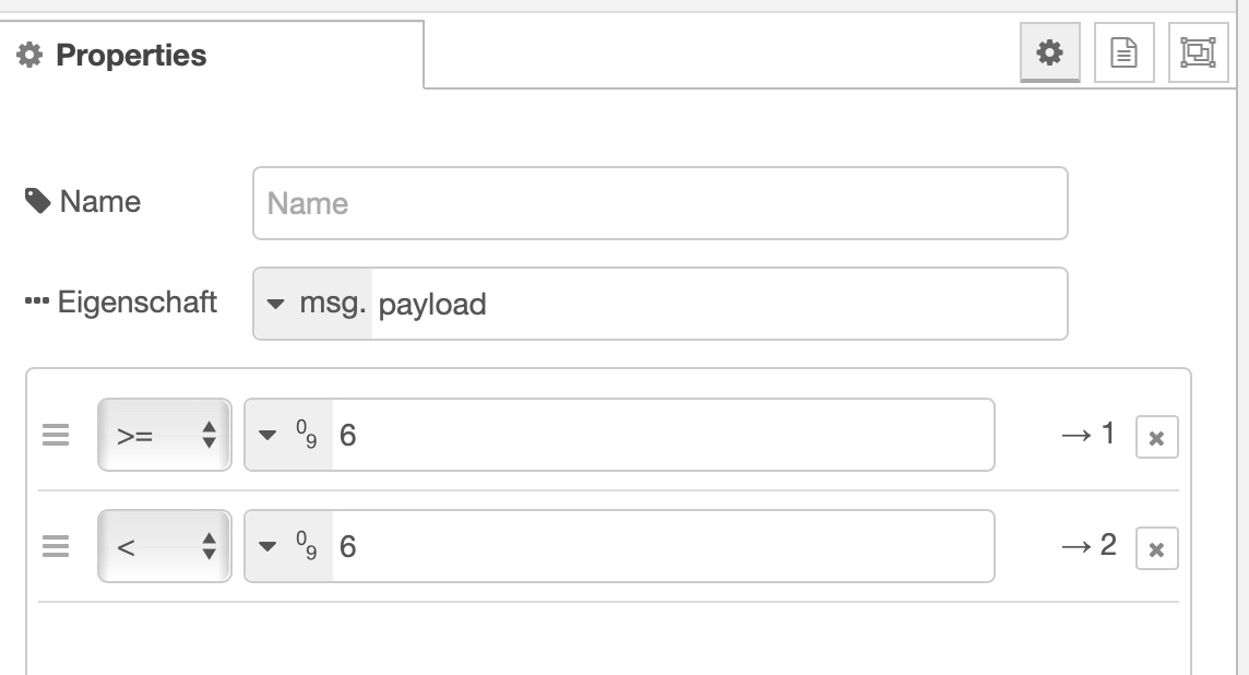 Hier stehen die 6A drin und die Message wird dann entweder auf den oberen (1) oder unteren (2) Ausgang der Node geschickt.
