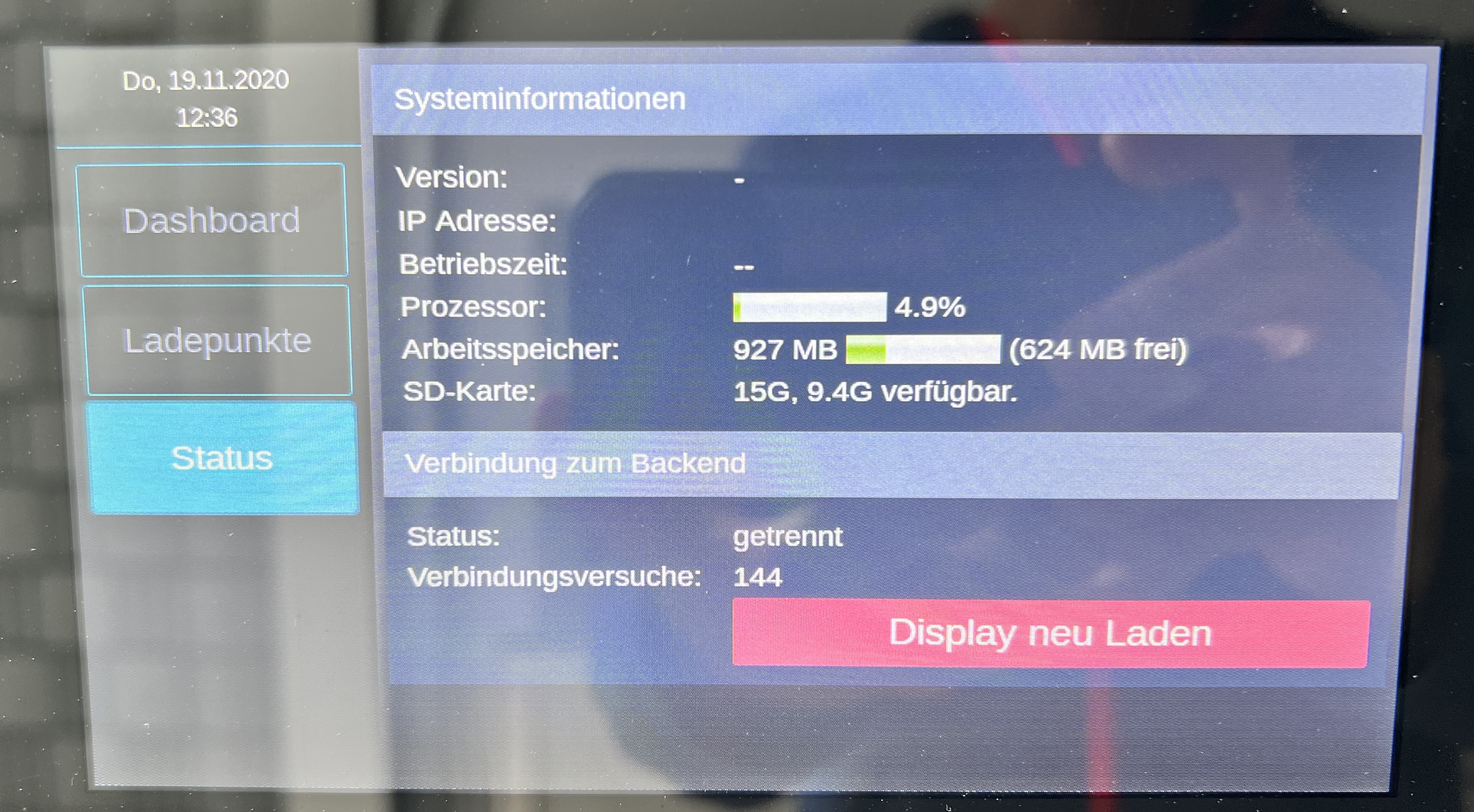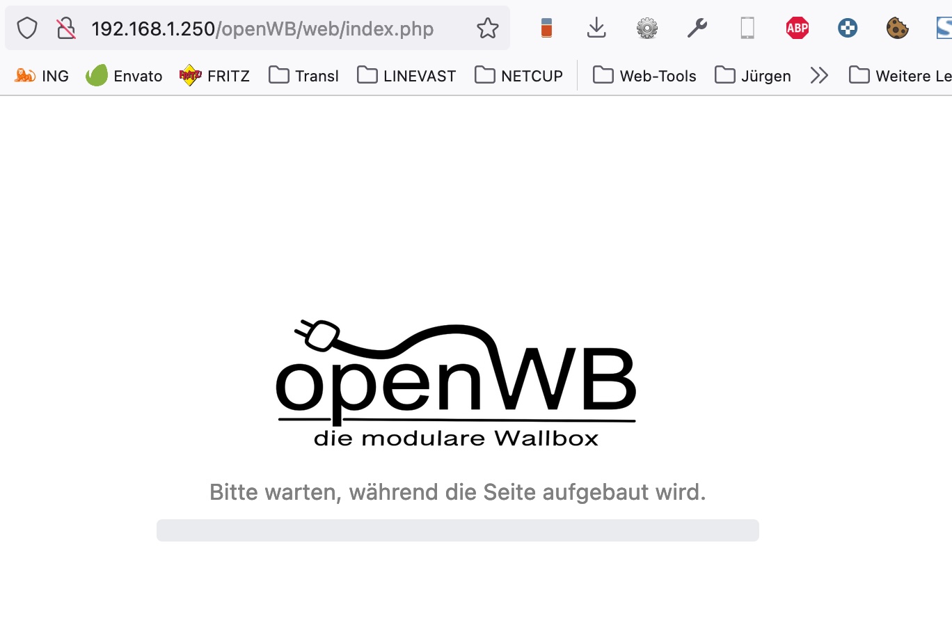 Kurz zum Startbildschirm der Master Box. Das sieht so aus, wenn in deinem Netz keine Websockets zugelassen sind. Die openWB liefert die Daten zum einen über http (Port 80) aus, das ist die Seite, die du auch siehst, ab dann geht es mit Websockets weiter. Wenn ich mich richtig erinnere ist das der Port 9001. Aus deiner Signatur entnehme ich, dass du in einer Agentur bist, also evtl. in einem Unternehmensnetzwerk mit diversen Firewalls. Kann es sein, dass der notwendige Port 9001 in deinem Netz irgendwo geblockt wird?